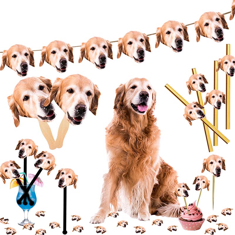 Introducing the ultimate Custom Pet Face Party Kit! Simply upload your favorite photo of your beloved dog, cat, or any other pet, and we'll transform their adorable face into a complete set of high-quality, personalized party decorations. Get ready for a celebration filled with wagging tails, happy purrs, and unforgettable photo ops.