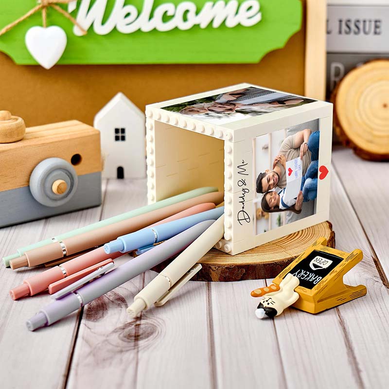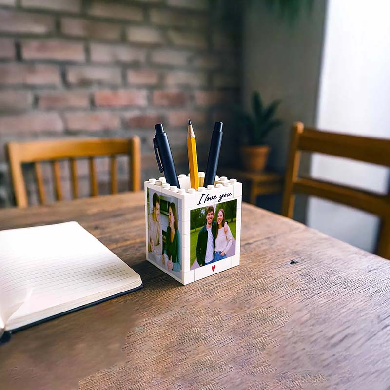 Made from high-quality building bricks, this pencil holder combines modern design with heartfelt personalization. Whether it's a wedding photo, a travel memory, or a cozy snapshot from home — each one is printed with care to capture your story in detail.