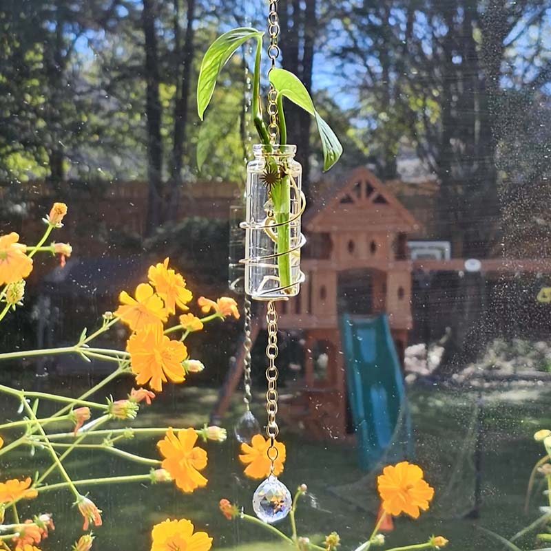 🌿 Dual Purpose Beauty This isn't just a propagation station - it's a piece of functional art! Watch your plant cuttings develop roots while the crystal suncatcher fills your space with uplifting rainbow light. Perfect for sunny windows, plant shelves, or anywhere you want to add magic and greenery.