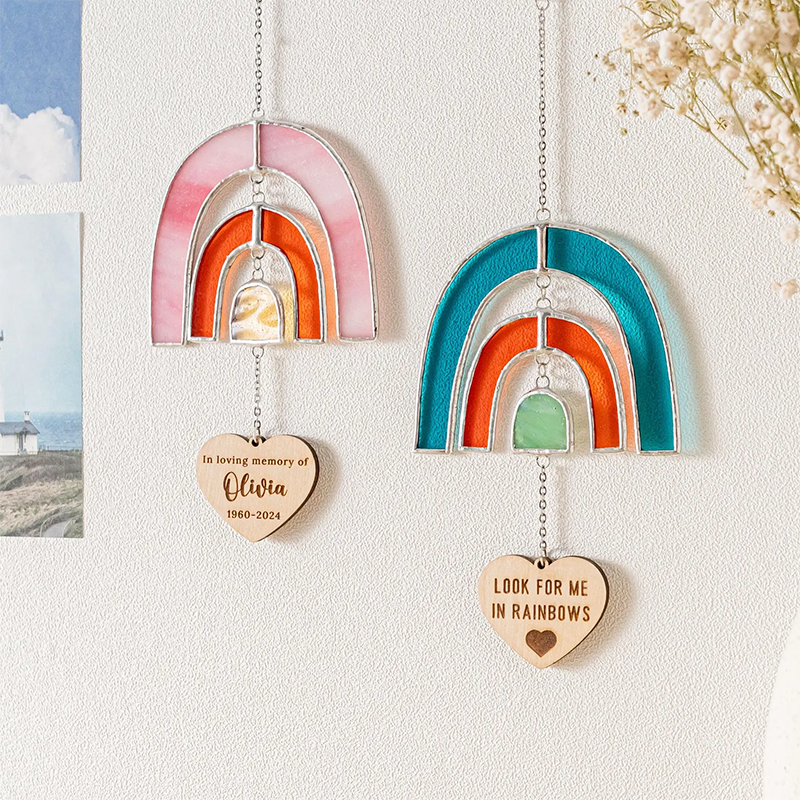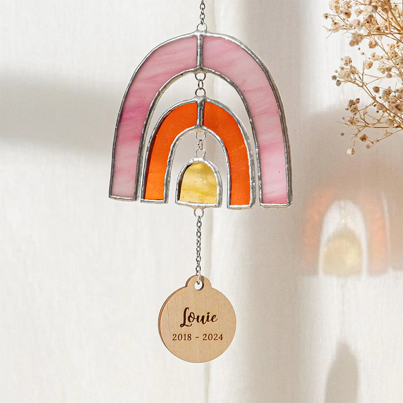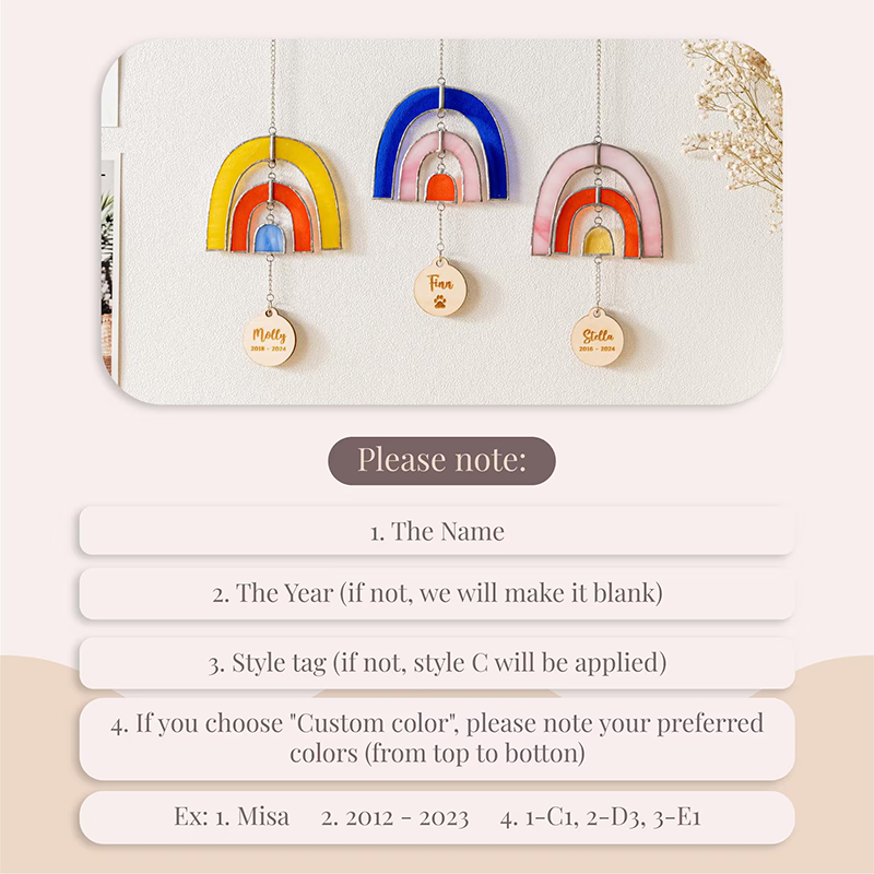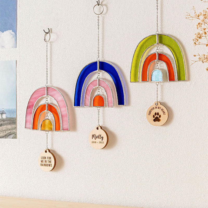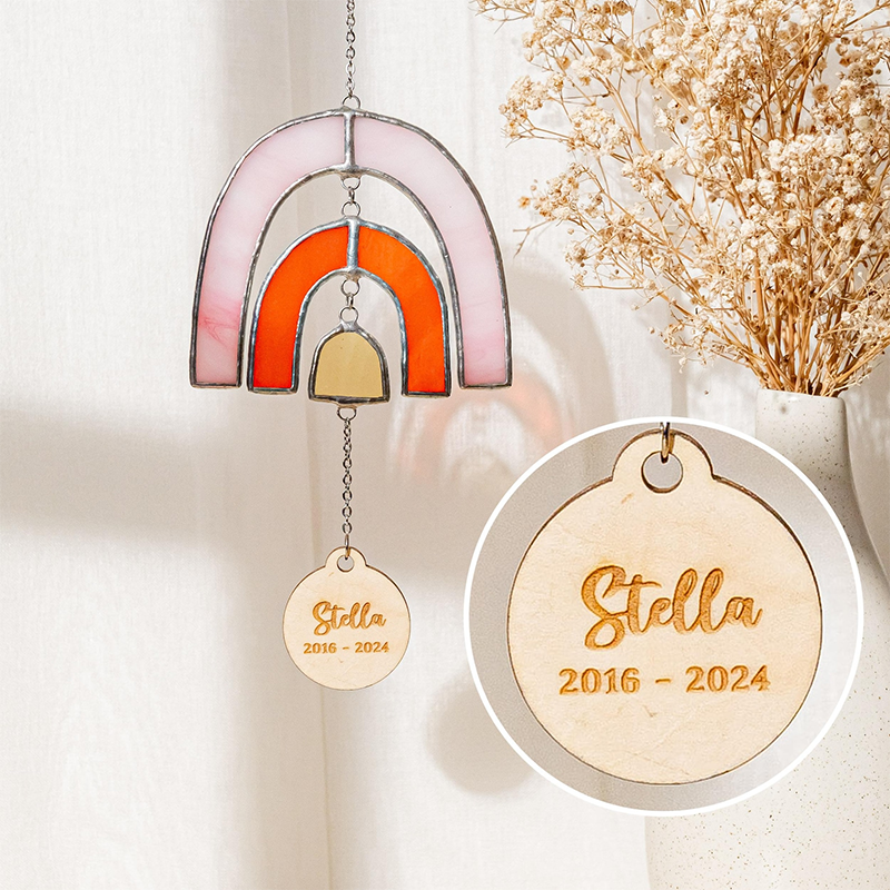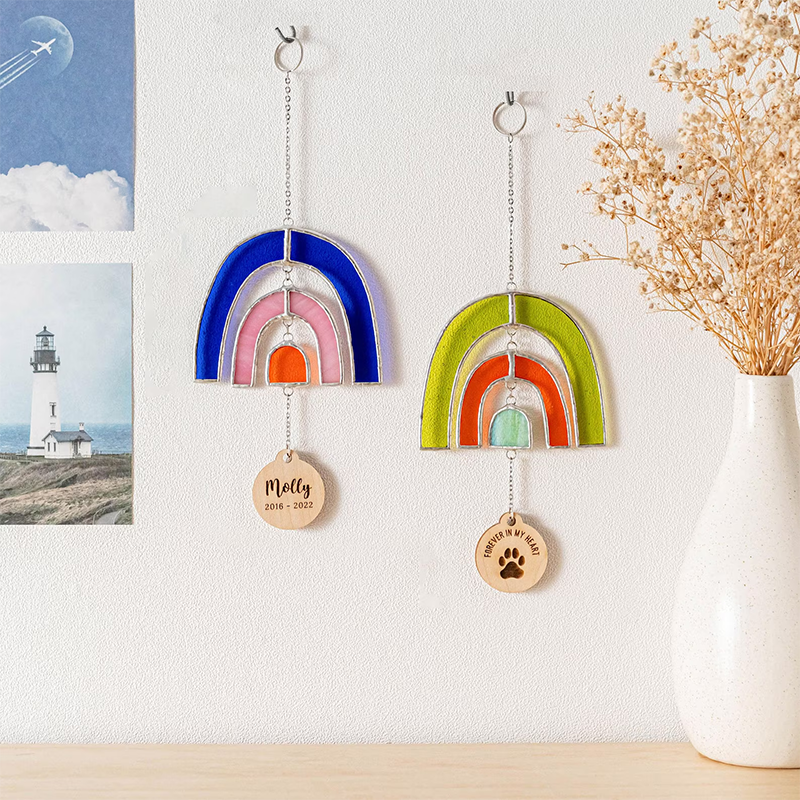 Honor the memory of your beloved companion with our Personalized Rainbow Bridge Paw Print Stained Glass Suncatcher — a heartfelt keepsake created to celebrate the unconditional love between you and your pet.