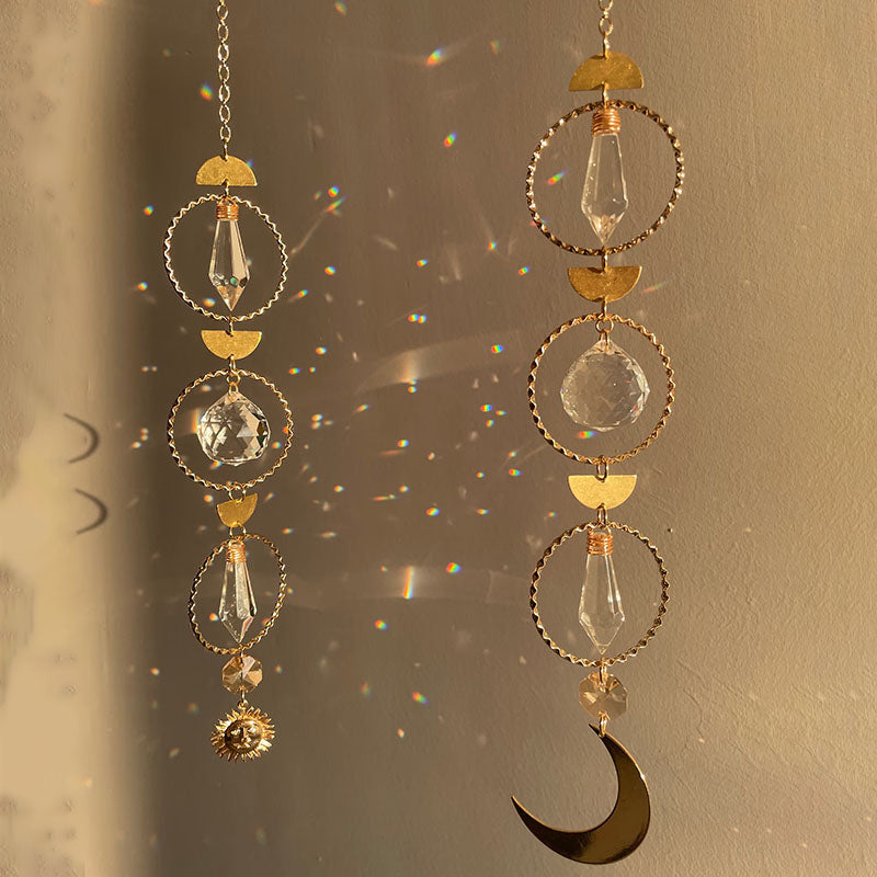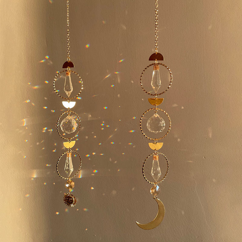 Handmade Crystal Moon & Sun Catcher - Create Beautiful Rainbows in Your Home