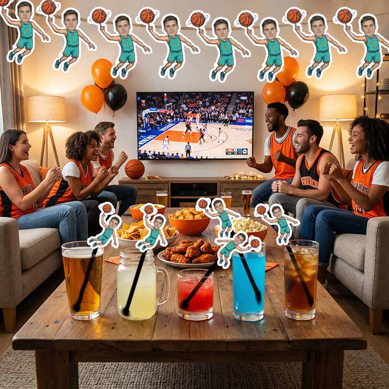 Personalized Basketball Drink Stirrers - Custom Photo Cocktail Stir Sticks for World Cup, Sports Parties & Birthdays - 12 Styles, Handmade