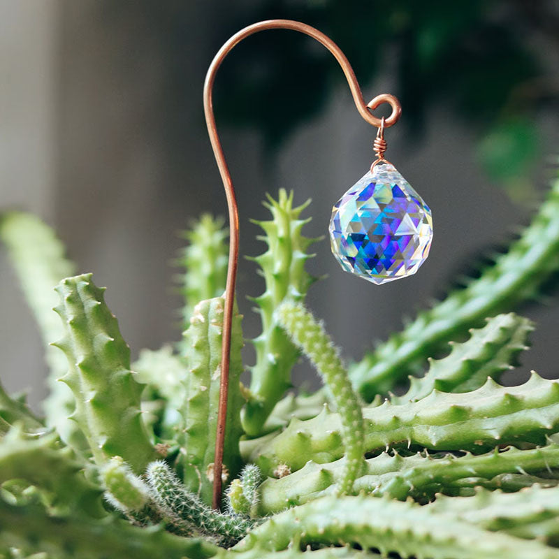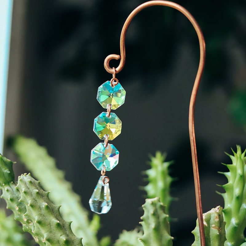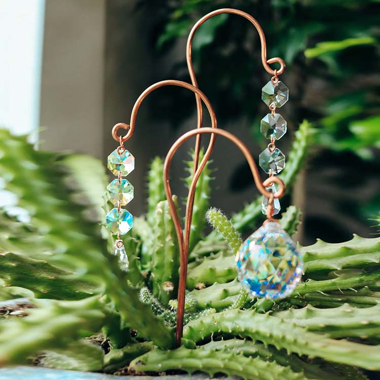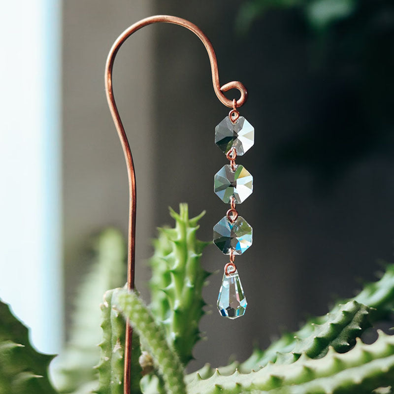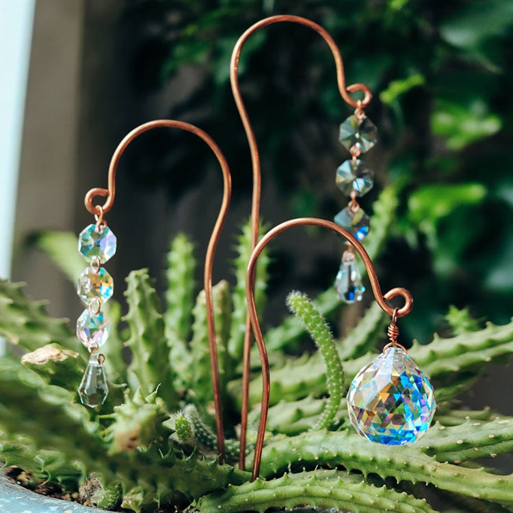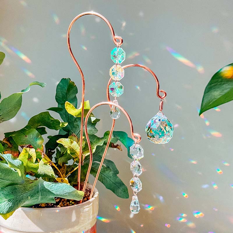 Transform ordinary sunlight into magical rainbows with our handmade Copper Plant Stake Sun Catchers! Each stake features a sparkling crystal prism that catches and refracts light, creating beautiful rainbow displays throughout your home or garden.
