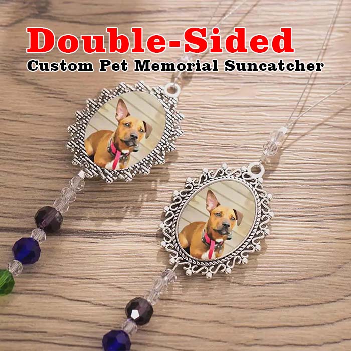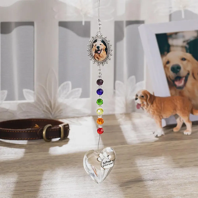 Crafted to catch and scatter sunlight, the shimmering rainbow crystal glass creates a warm, soothing glow—bringing peace to any space. Whether displayed in a window, garden nook, or memorial corner, this suncatcher keeps your pet’s spirit shining bright. Each piece is custom-made to honor your pet, making it a meaningful keepsake for those mourning the loss of a dog, cat, or any cherished companion.