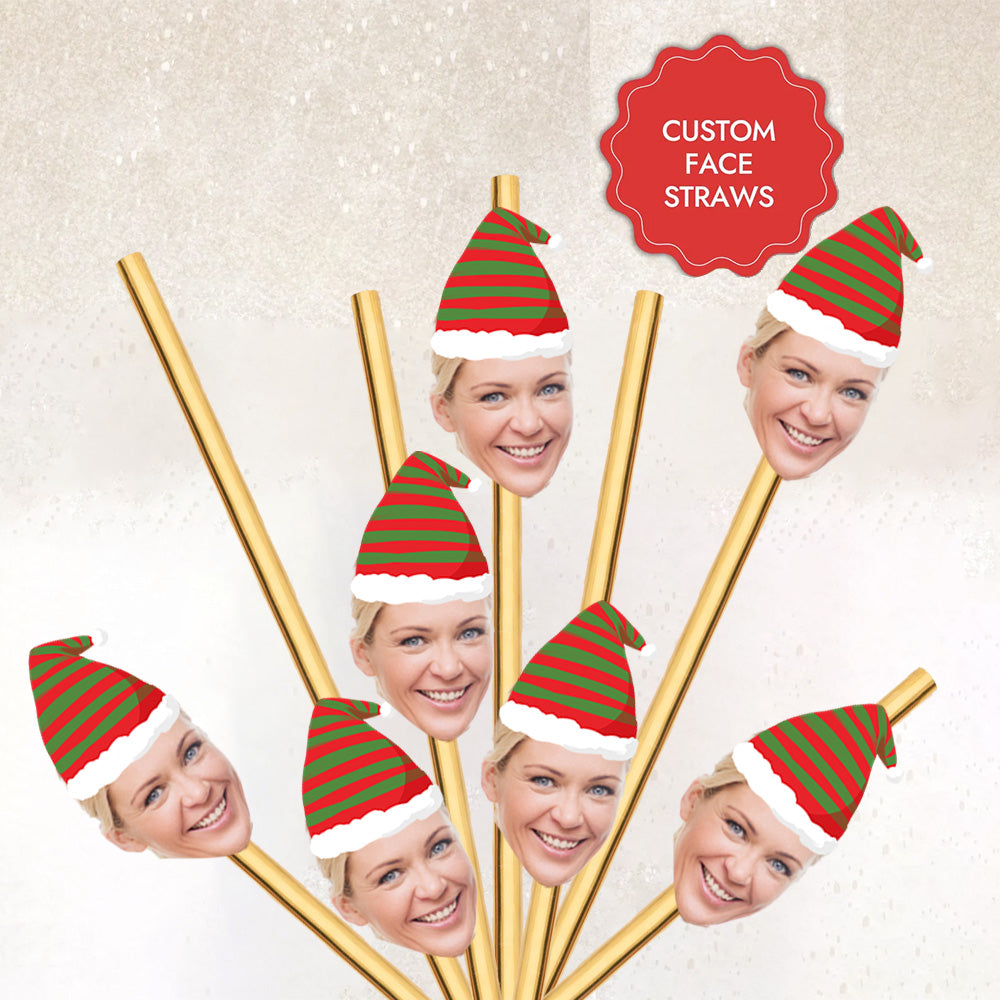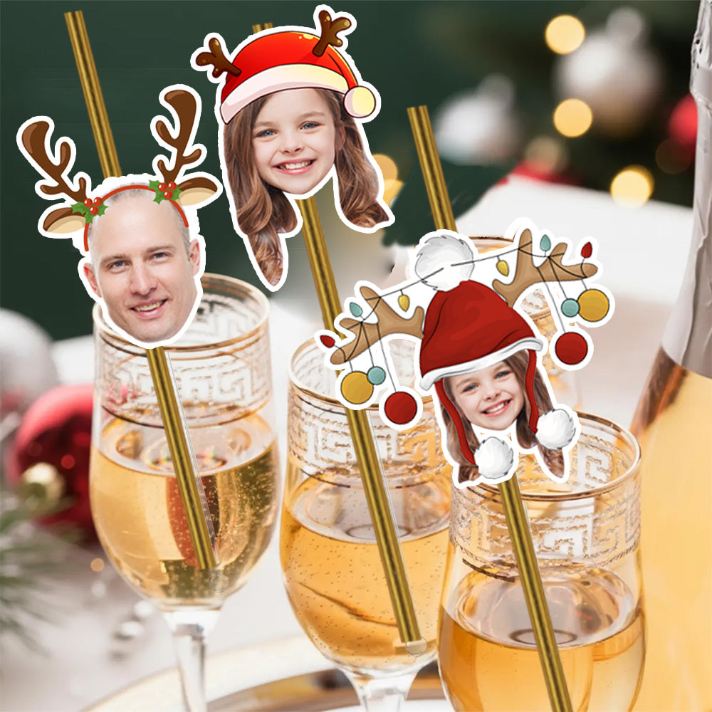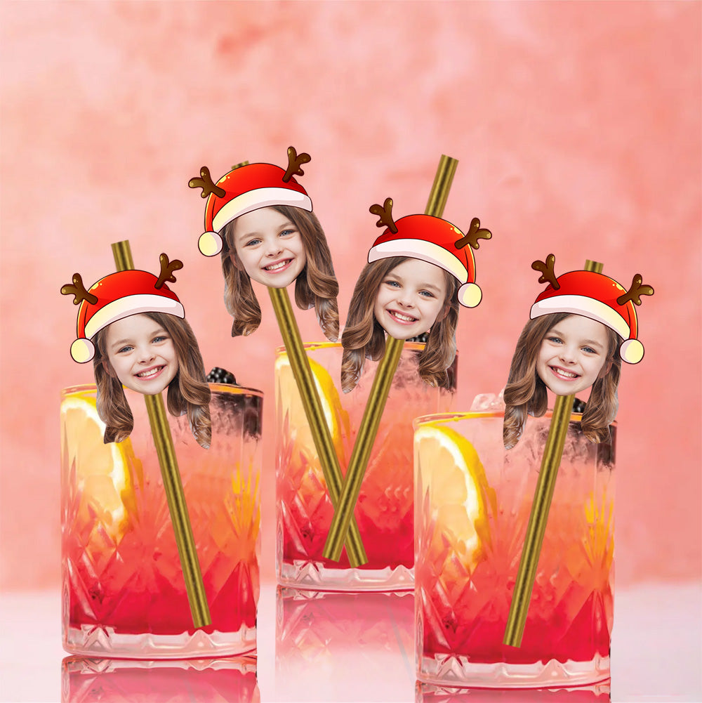 Custom Christmas Paper Straws, Personalized Party Straws, Custom Drink Decorations, Handmade Holiday Party Supplies, Christmas Straw Decorations, Belovechain Custom Party Products, Personalized Christmas Gifts, Photo Drink Stirrers, Holiday Bar Accessories, Custom Christmas Event Decor, Custom Party Favors, Reusable Christmas Straw Toppers