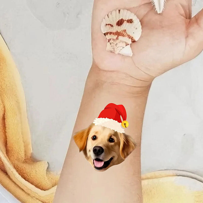 custom pet tattoo stickers, Christmas pet tattoos, personalized dog cat temporary tattoos, holiday party favors, Christmas wreath pet tattoos, custom pet face sticker, pet lover Christmas gift, handmade pet tattoo, festive pet accessories, holiday event decorations