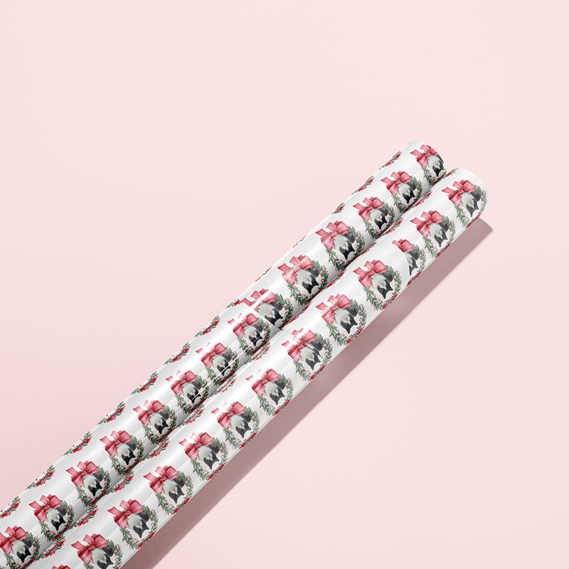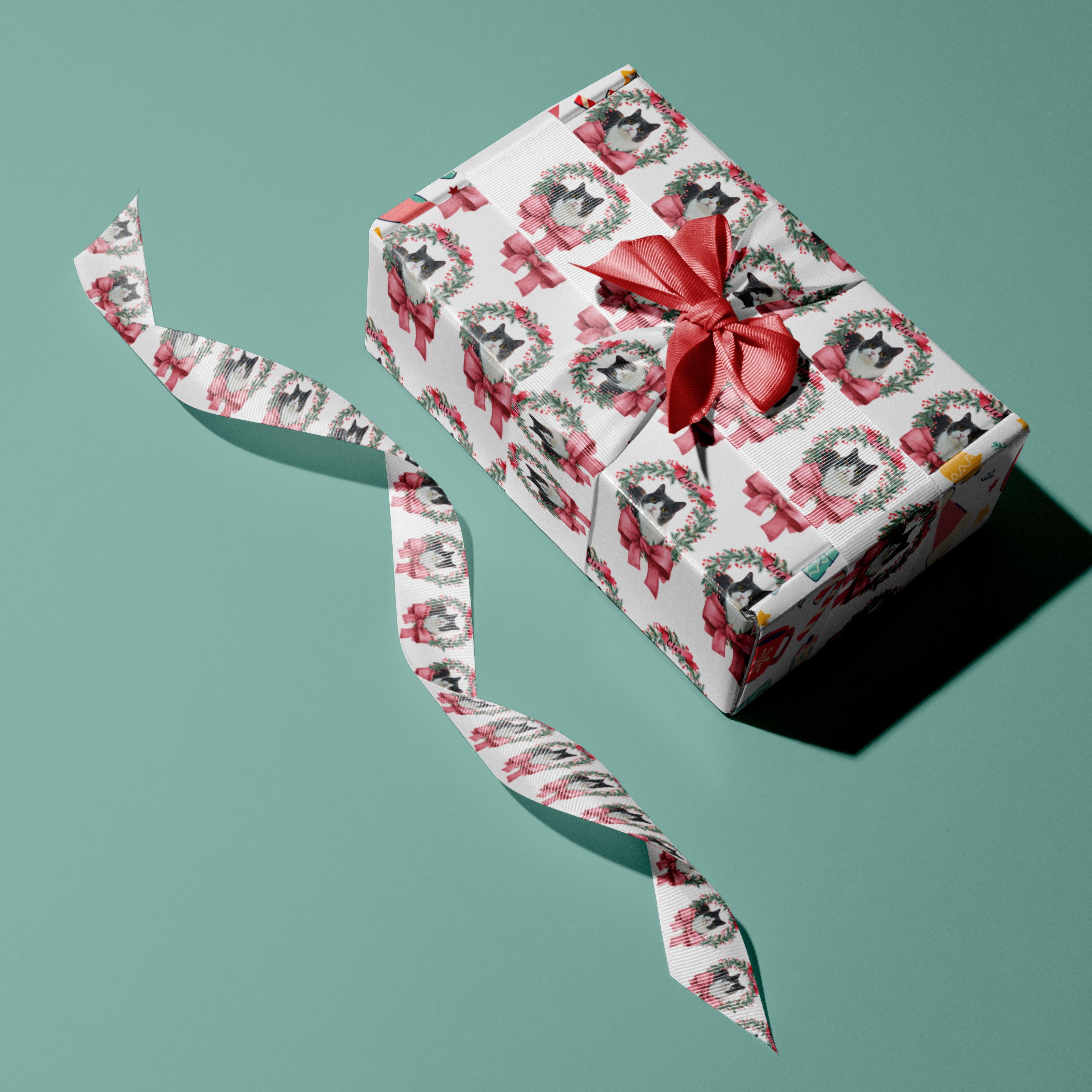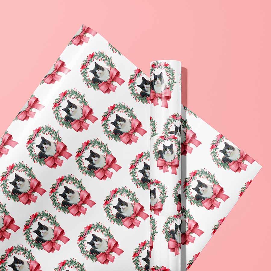 Custom Pet Christmas Wrapping Paper – Personalized Dog & Cat Gift Wrap with Holiday Wreath Design | Premium Poster-Quality Pet Photo Wrapping Sheets