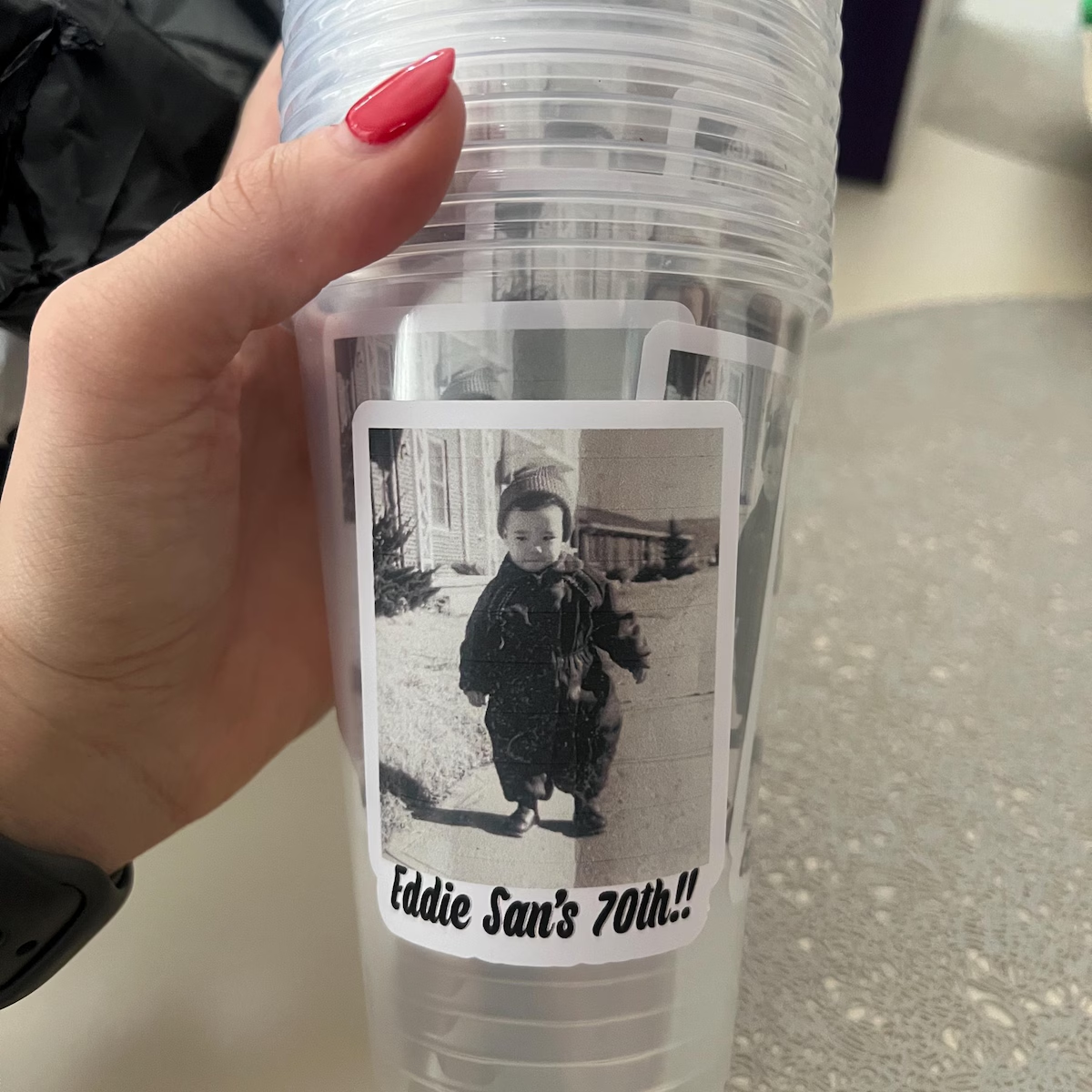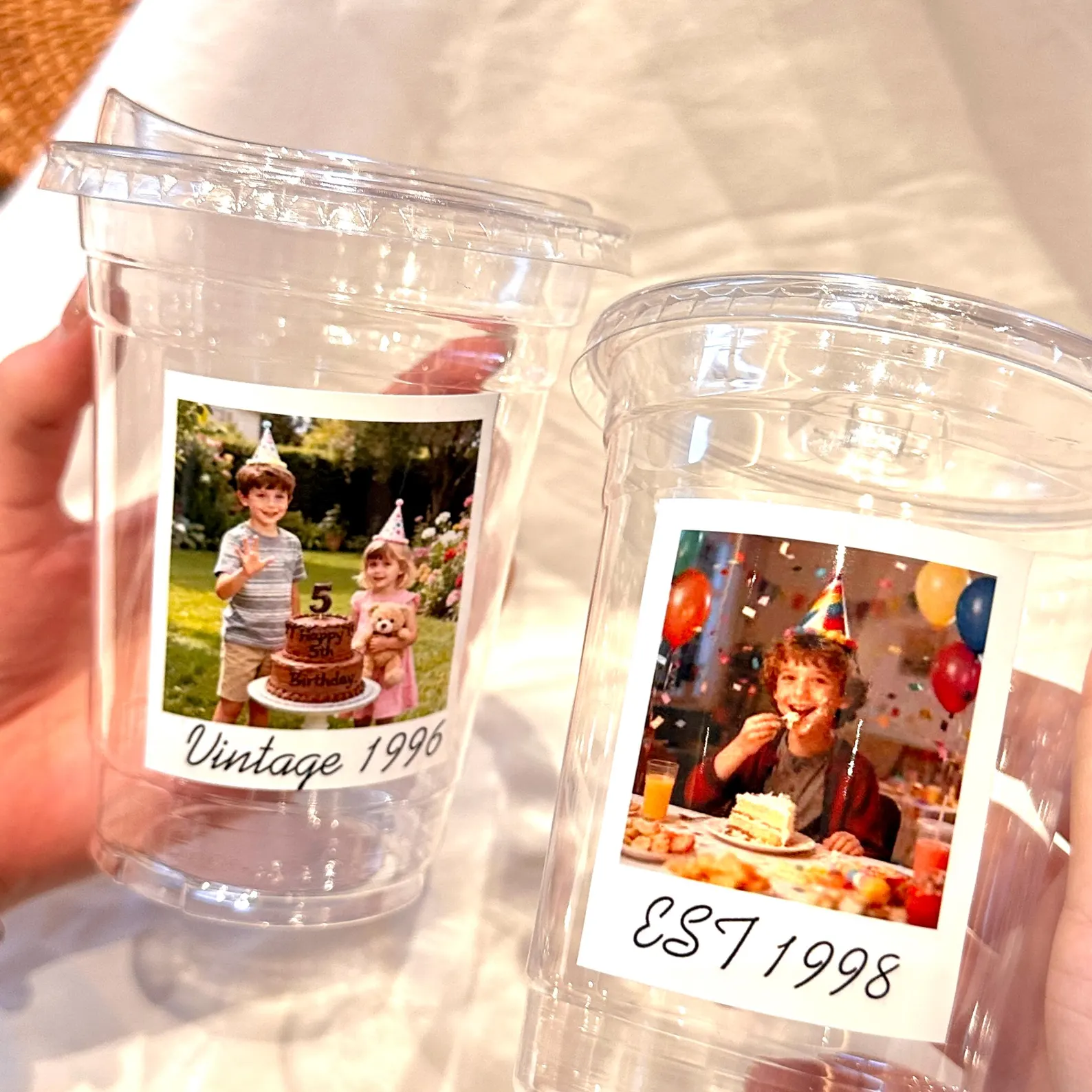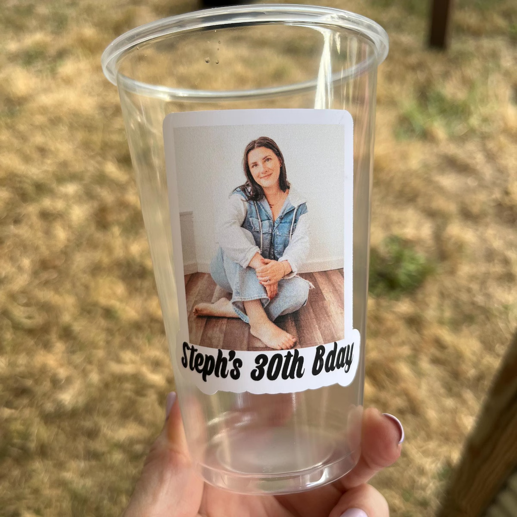 Celebrate in style with birthday decorations featuring a personalized photo cup — the perfect keepsake for the birthday person. This customized party decoration includes a 16oz plastic cup with lid printed with your favorite photo, making it a fun and unique touch for any milestone celebration.