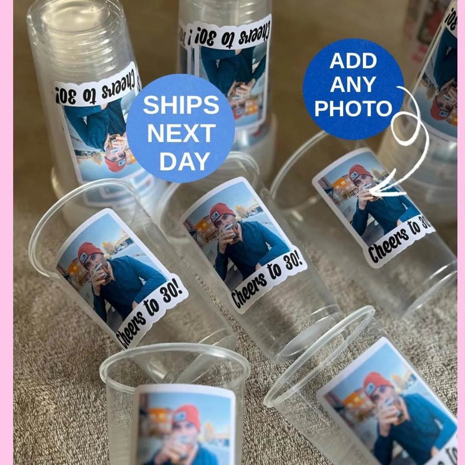 30th Birthday Cups • Face Cups • Adult Party Cups • Personalized Tableware • Photo Party Favors
