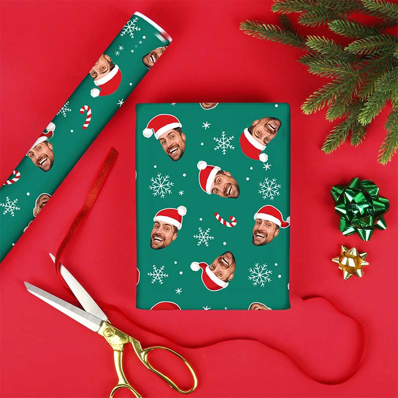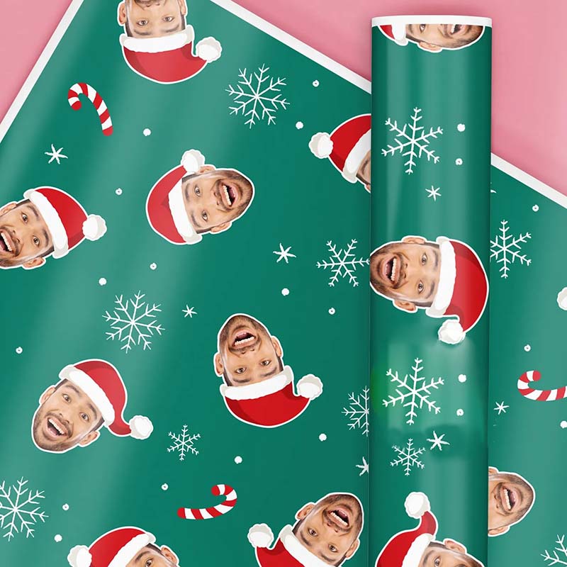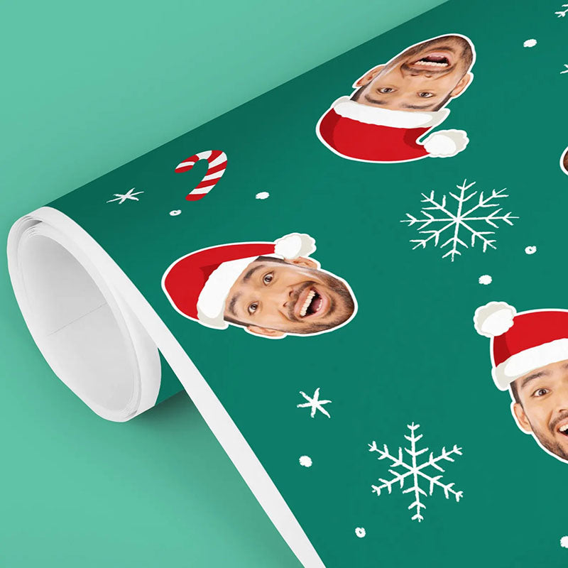 Santa Claus Green Personalized Photo Christmas Wrapping Paper Funny Custom Face Holiday Gift Wrapping Paper Roll Kids Wrapping Paper