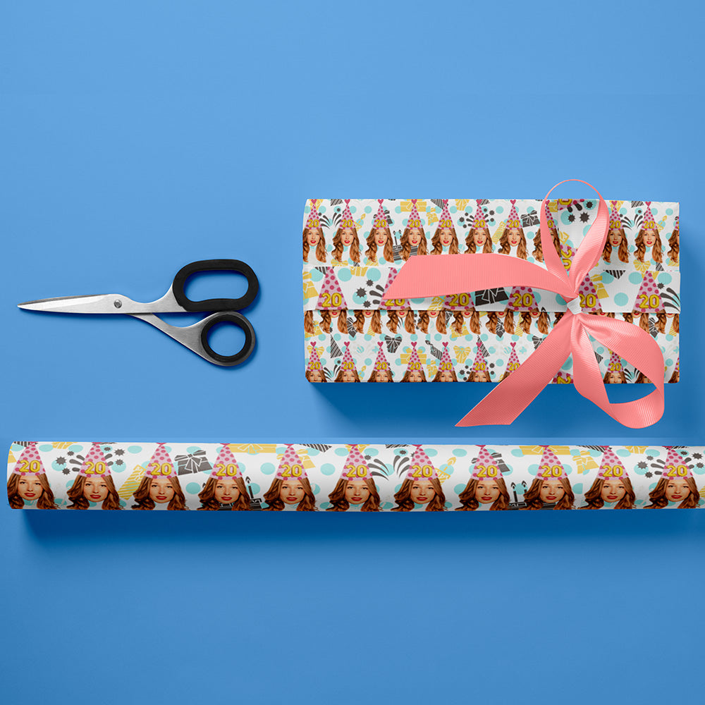 Personalised Birthday Gift Wrap, Wrapping Paper, Your Photo, Your Name, Customised, Wedding, Party Hat, Paper, Your Age, Eco, Recyclable