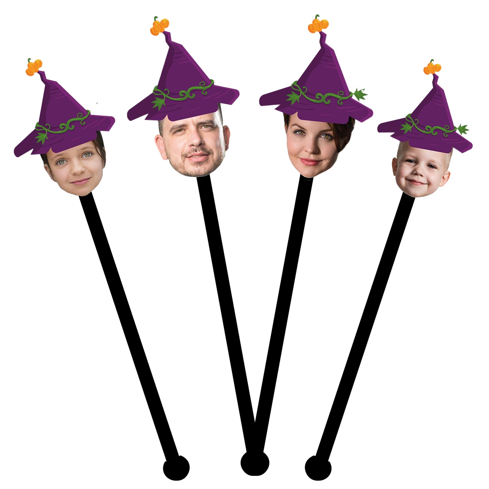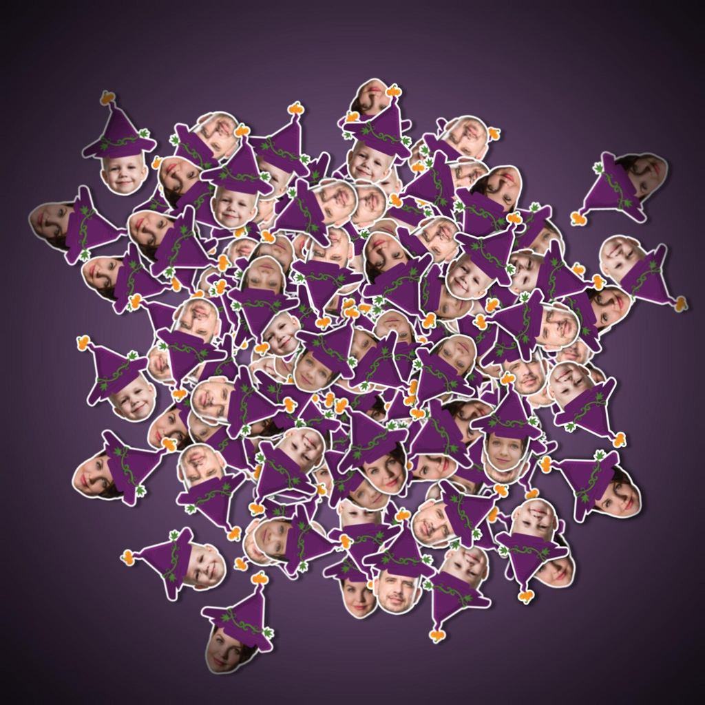 Make your Halloween party unforgettable with personalized photo confetti, drink stir sticks, cake toppers, and straws. Choose from 6 Halloween hat designs, upload your photo, and weโll create spooky custom decorations for your party. Durable cardstock, reusable, and shipped fast!