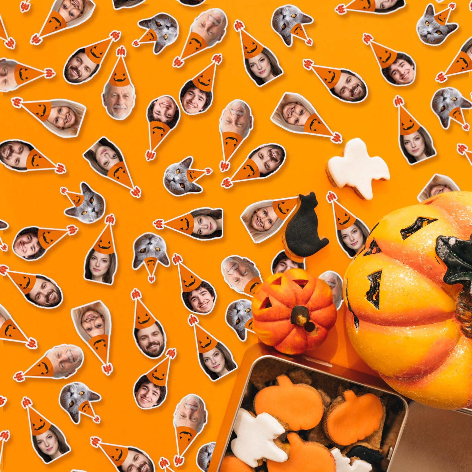 Custom Halloween Face Confetti โ Personalized Photo Party Table Scatter, Witch Hat & Pumpkin Hat Spooky Decor