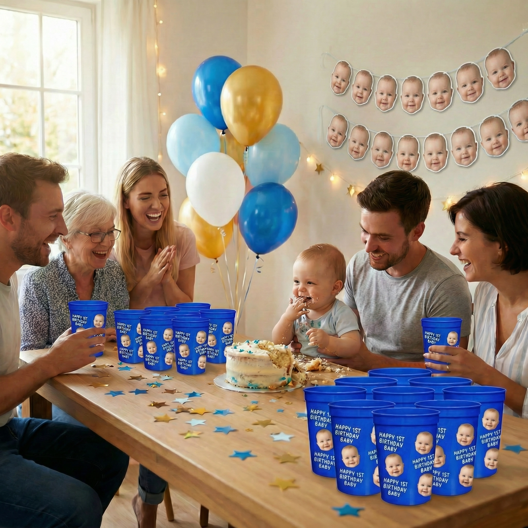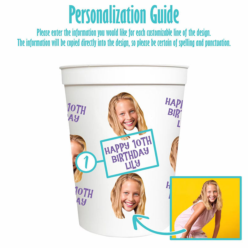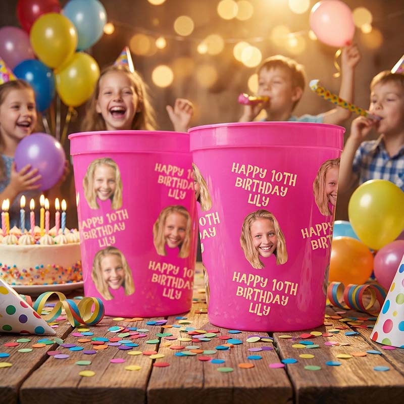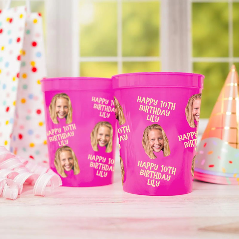 Get ready to elevate your celebration with our full-color Custom Face Party Cups! There is simply no better way to say "Let's Celebrate" than by having the guest of honor's face printed right on everyone's drink. These vibrant, 16-ounce plastic stadium cups are the ultimate upgrade for any birthday party, anniversary, or special event.