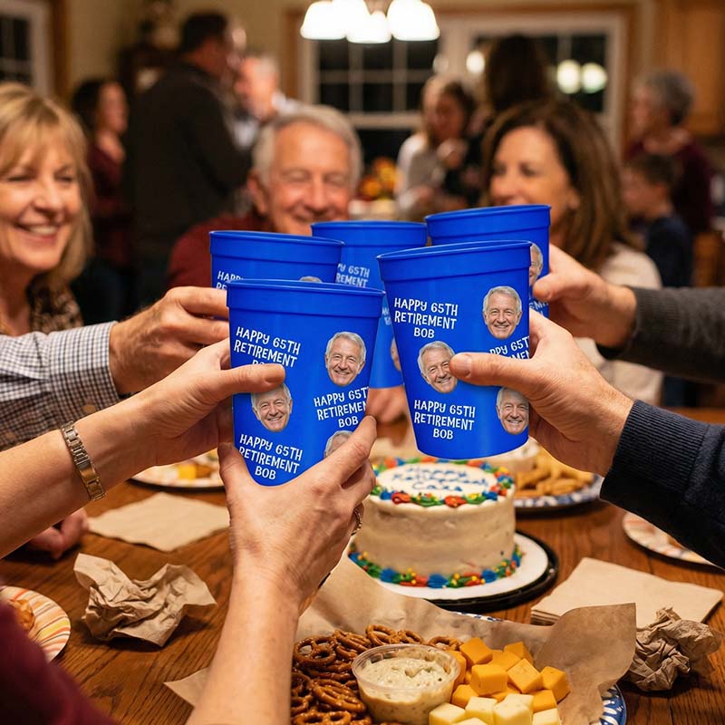 Retirement Parties: Send off a colleague in style with cups featuring their face and a funny farewell message.