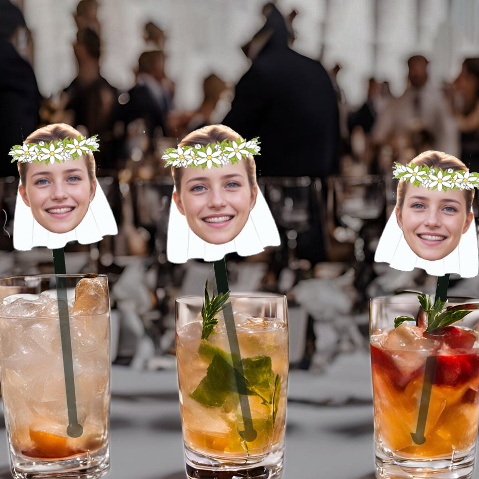 Add an elegant and playful touch to your bridal celebrations with our Personalized Bridal Veil Cocktail Drink Stirrers! These customized face blending sticks are perfect for weddings, engagement parties, bachelorette parties, and champagne toasts. Featuring the bride’s face complete with a beautiful veil, these stirrers are the ultimate personalized décor, making every drink a delightful part of the celebration.