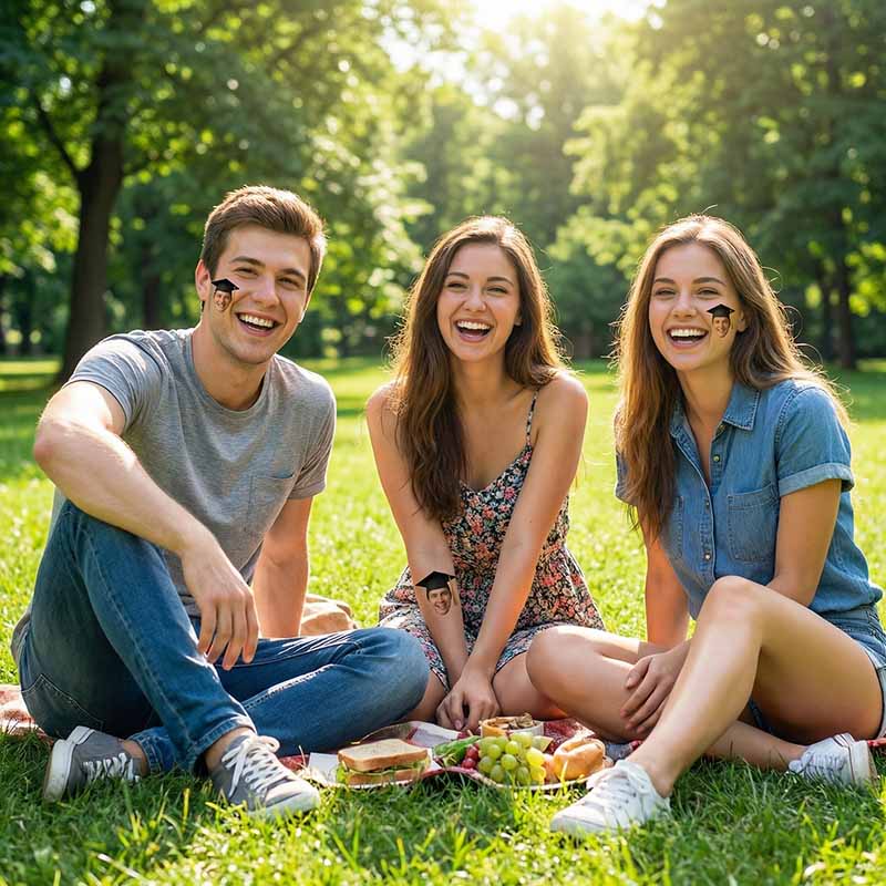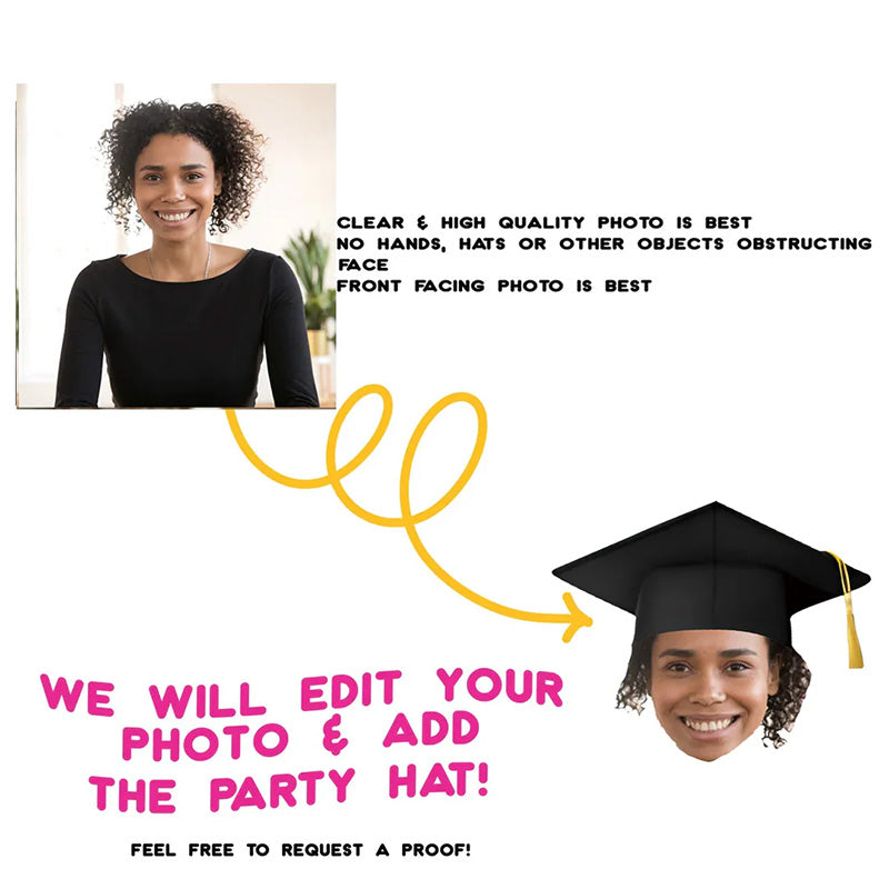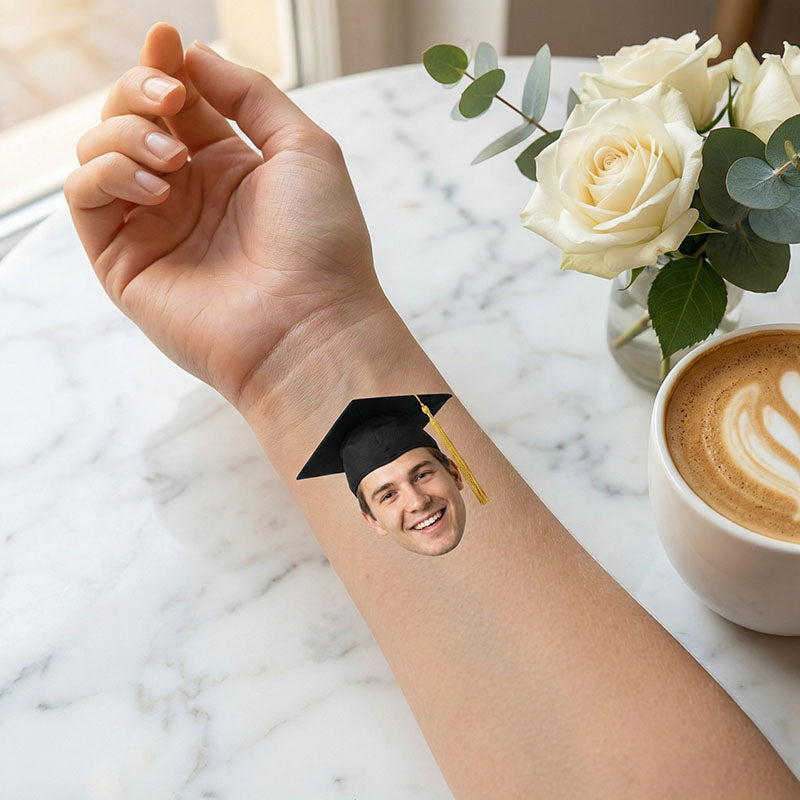 Simply upload a clear, front-facing photo of the graduate. If the photo doesn't include a graduation cap, our team will seamlessly add one. If the graduate is already in cap and gown, we'll carefully trace the image to create a stunning, true-to-life temporary tattoo.
