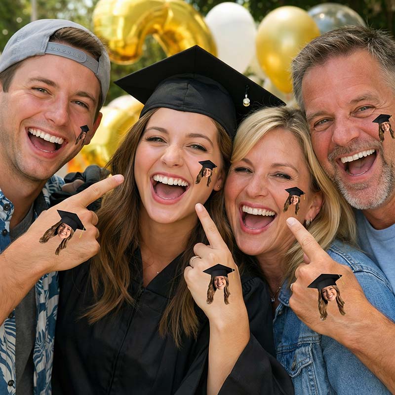 Make your graduation celebration truly unforgettable with Belovechain's Custom Graduation Photo Temporary Tattoos — the perfect personalized party favor for the Class of 2026.