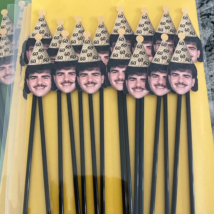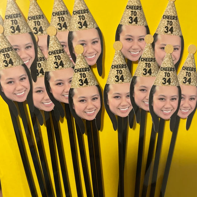 Make your birthday celebrations unforgettable with our Custom Birthday Face Drink Stirrers. Order now and add a personalized touch to your party drinks!