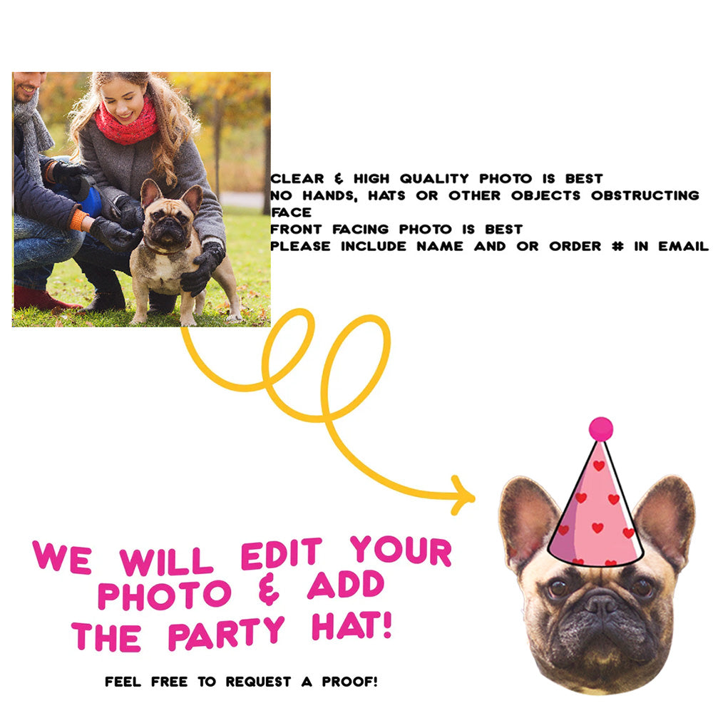 ✔️ Fully Customizable: Turn your pet’s face into cute party decor with a festive birthday hat.
