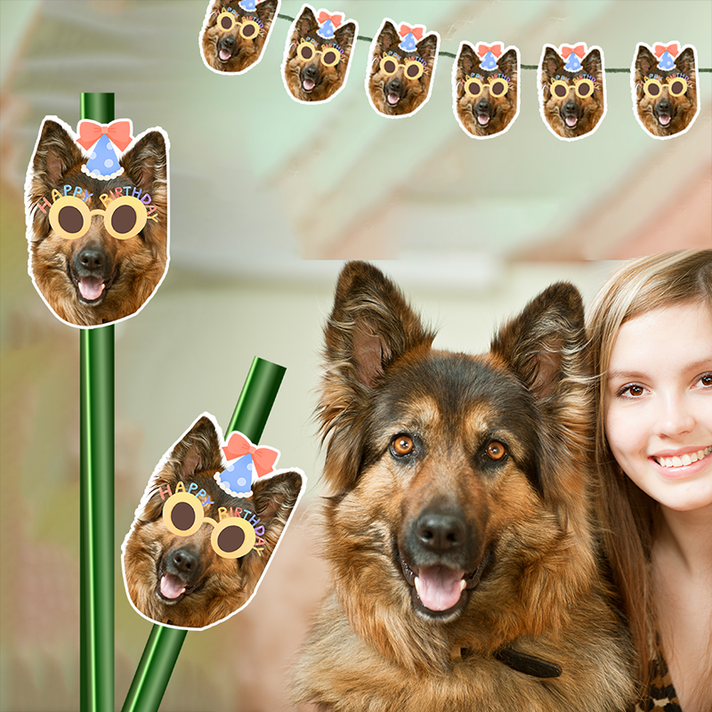 ✔️ Fully Customizable Pet Photo: Upload a photo of your pet's face (with uncovered ears), and we’ll turn it into a fun banner topper!