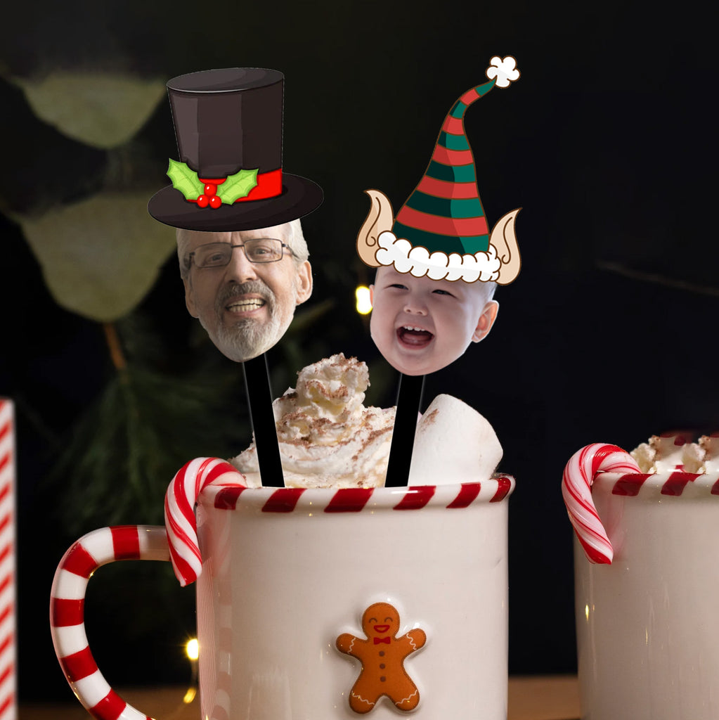 Description: Add a personal touch to your holiday celebrations with these fun and festive personalized drink stirrers. Perfect for Christmas parties, holiday birthdays, weddings, and any festive gathering, these custom stir sticks feature a face cutout with a Santa hat, making your drinks extra special and bringing a smile to everyone's face.