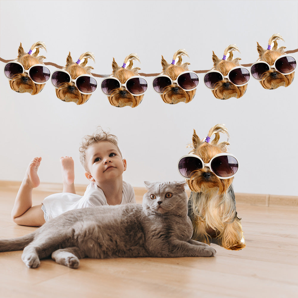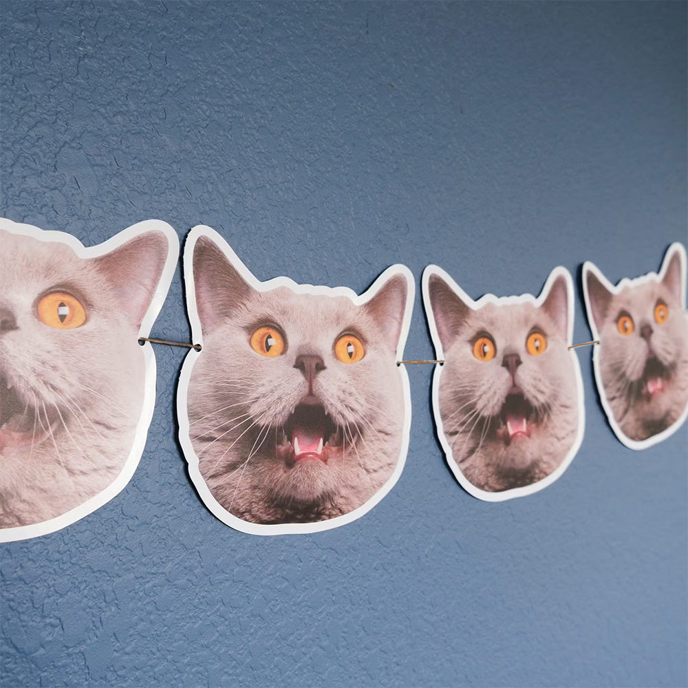 Personalized Maker Pet Banner — custom pet face garland for birthday parties, showers, and pet celebrations. Upload your pet’s photo and create a memorable decoration!