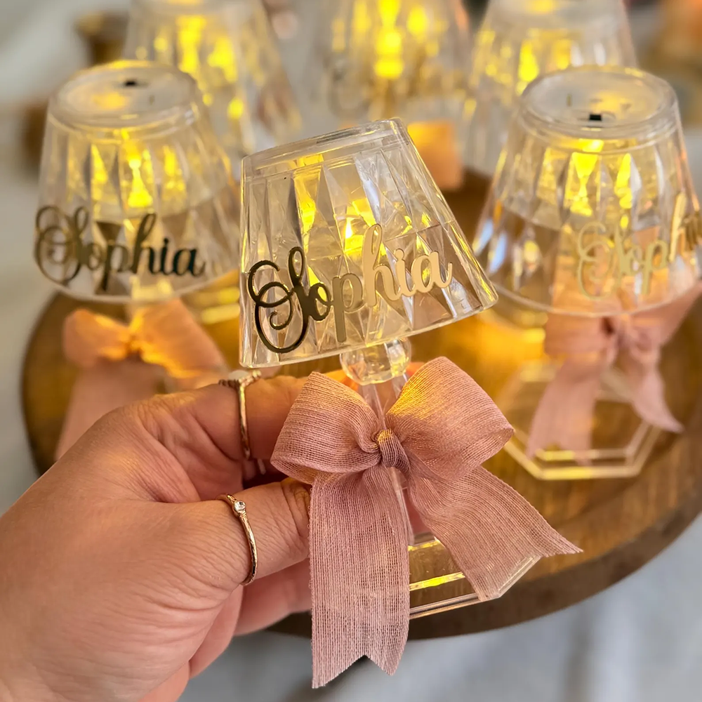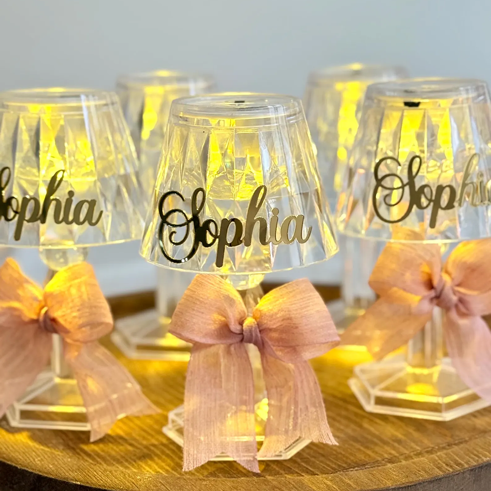 Make every celebration unforgettable with our Personalized Mini Name Lamp with LED light – a unique keepsake and thoughtful party favor for your guests. Each lamp is beautifully crafted with a transparent body, custom UV printing, and soft warm LED lighting to create a cozy glow.
