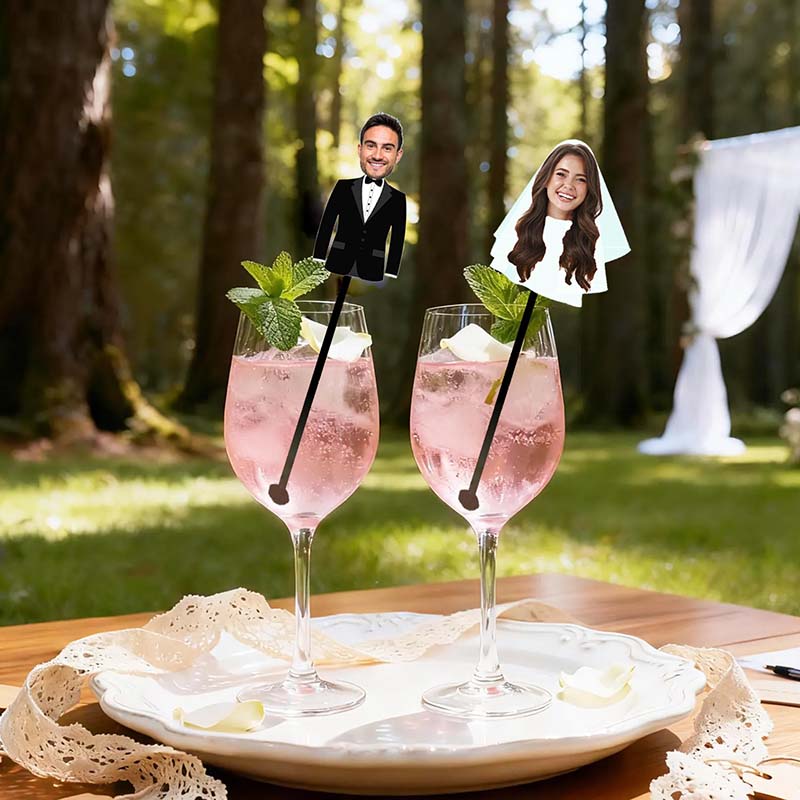 Double-Sided Custom Bride & Groom Cocktail Stirrers – Personalized Wedding Drink Sticks & Photo Party Favors