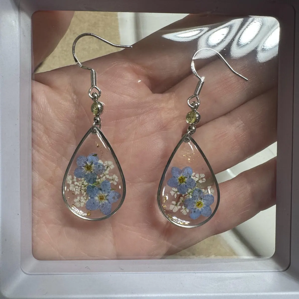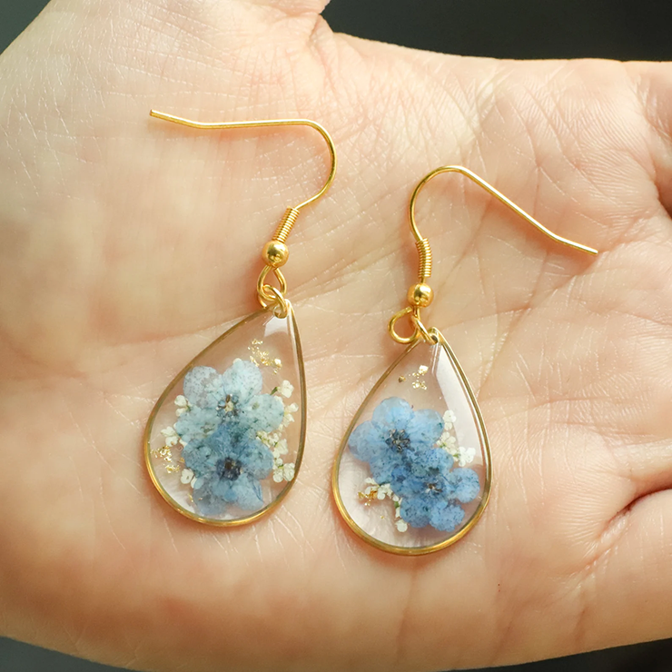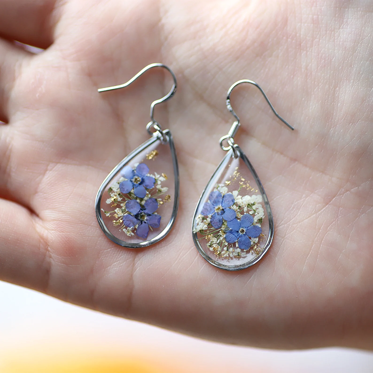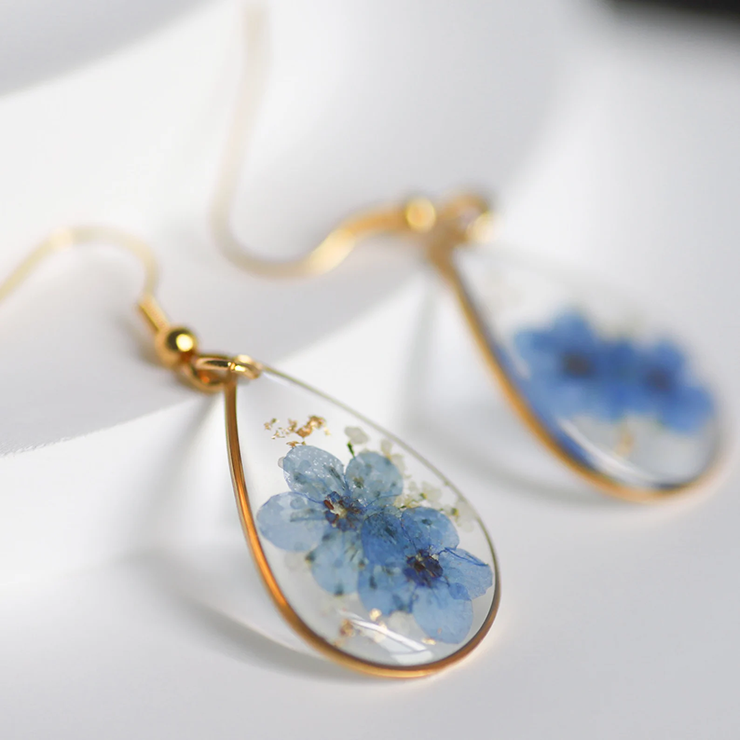 Forget Me Not Flower Earrings for Women, Dangle Drop Earrings, Handmade Pressed Real Floral Resin Earrings, Christmas Gift for Mom