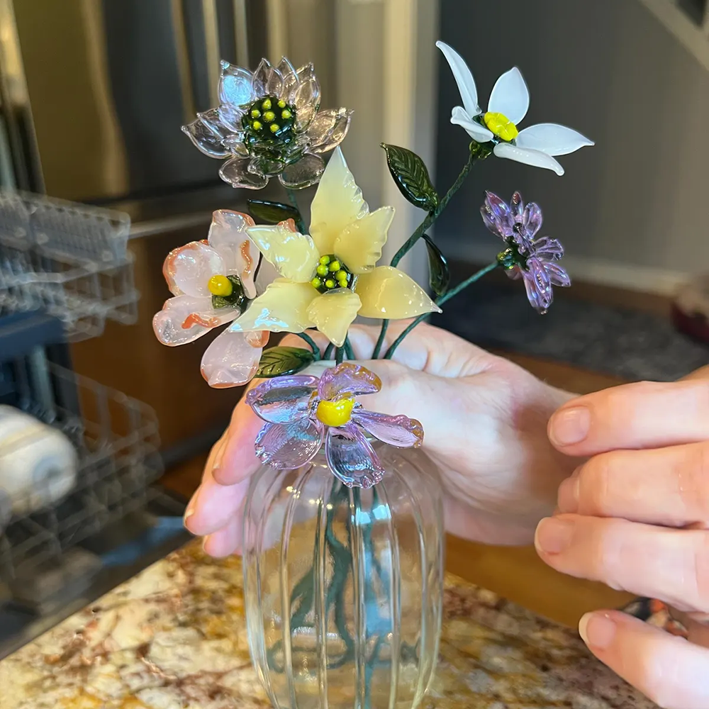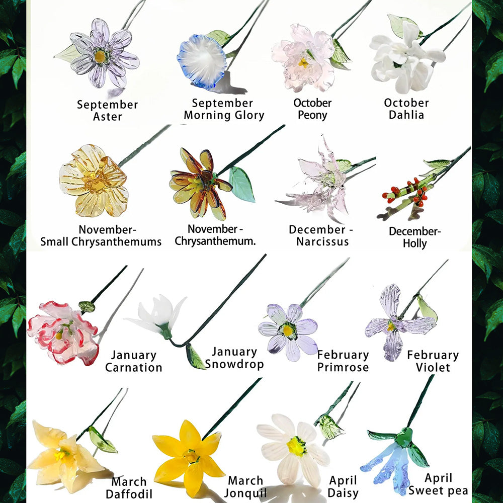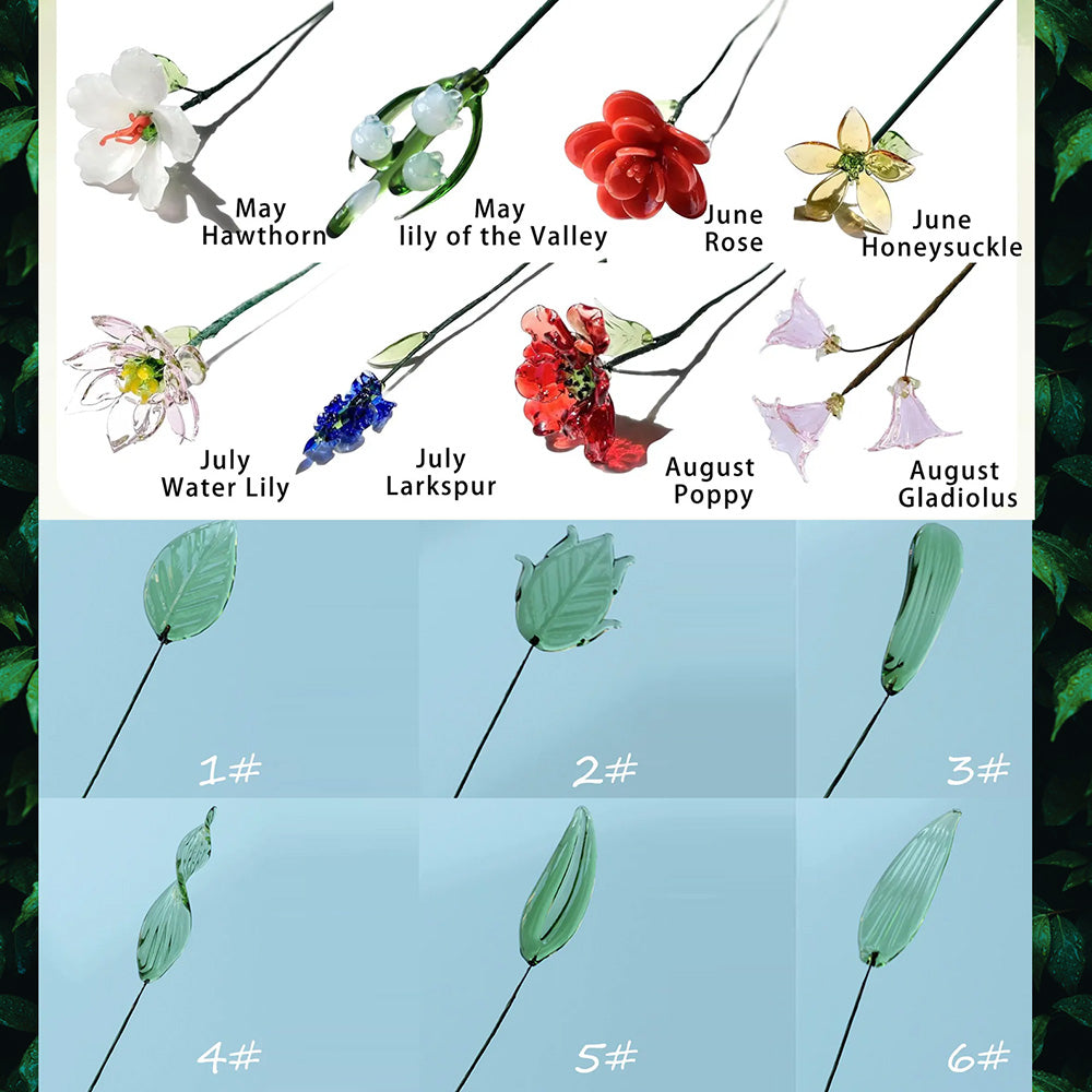 💐Want to create a bouquet? Pick flowers matching the birth month, and I’ll add green florist tape—so you can style your glass blooms however you prefer!