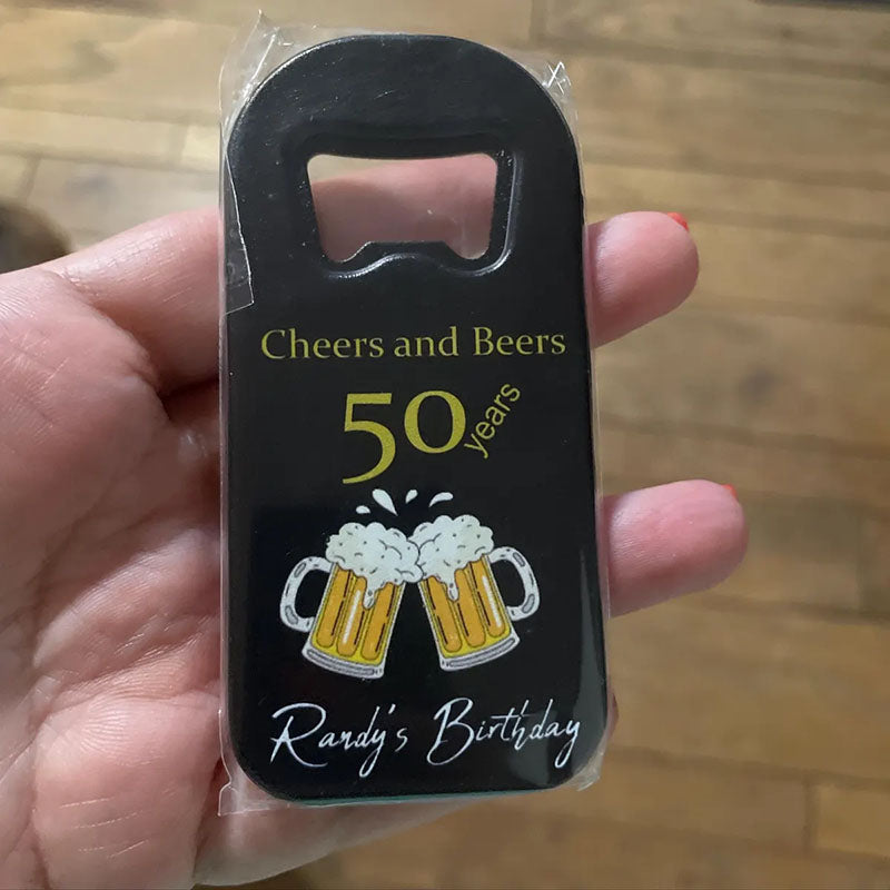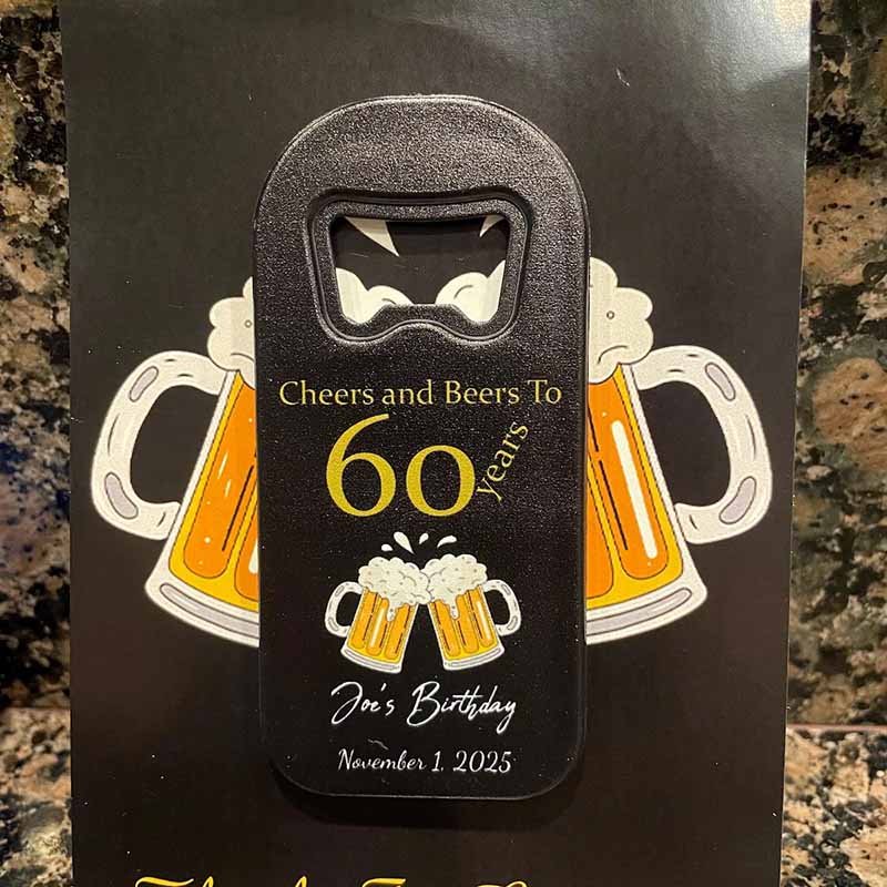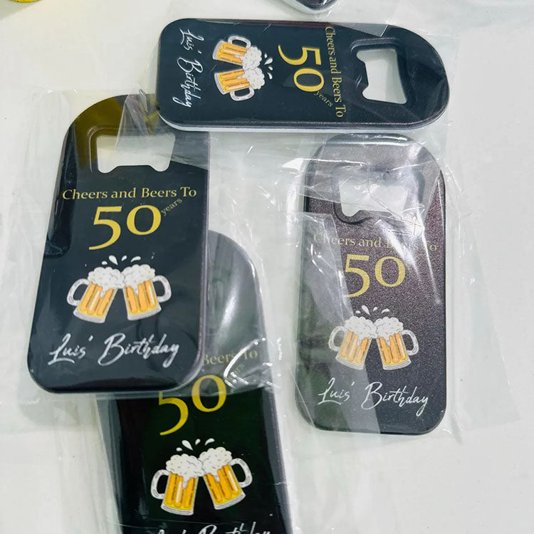 Surprise your guests with a personalized birthday return gift that stands out! Our custom magnetic bottle openers are designed to create lasting memories. Each opener can be personalized with names, dates, or a short message, making them perfect for birthday favors, custom party gifts, and milestone birthday celebrations.