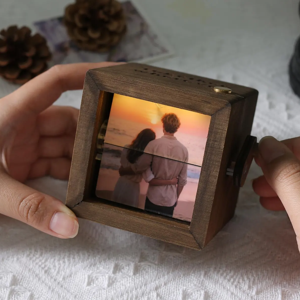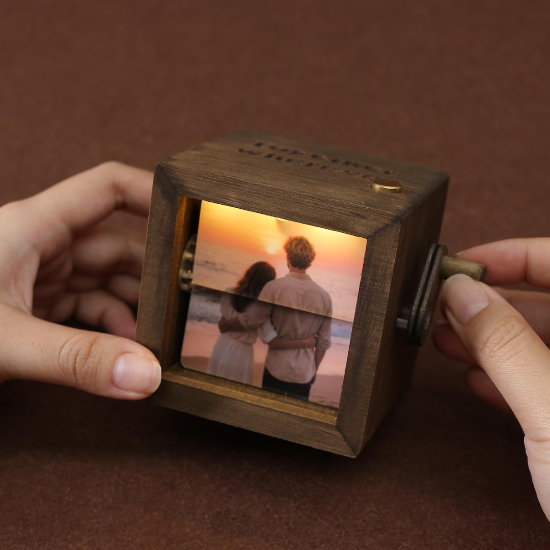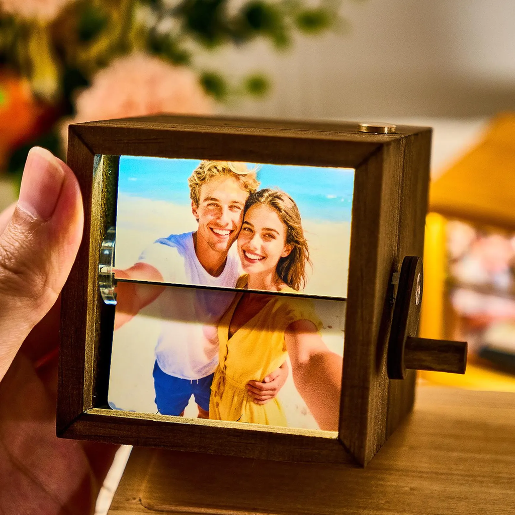Personalized Wooden Flipbook Animation Box with Light – Custom Photo Crank Box, Handmade Memory Gift for Anniversary, Birthday & Wedding