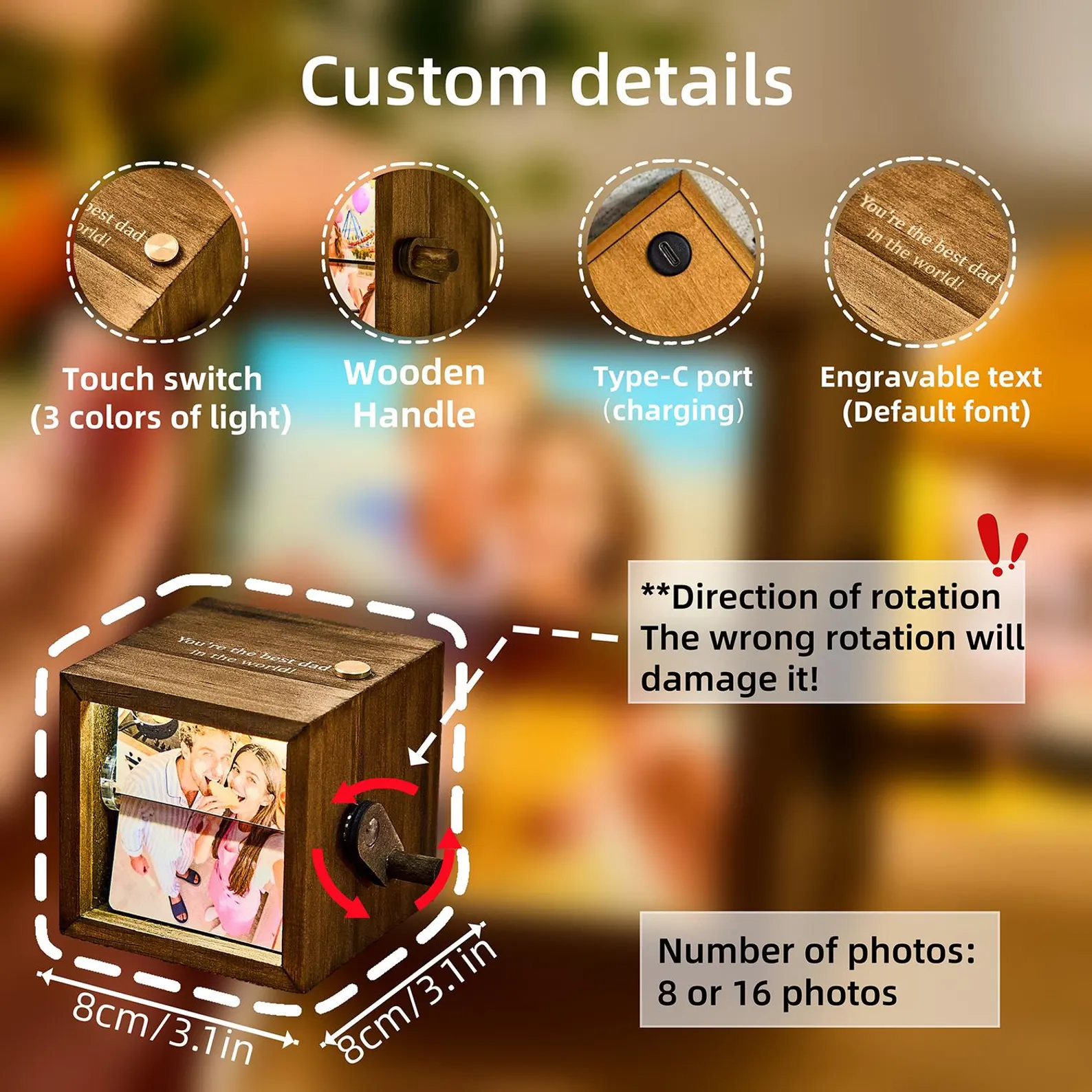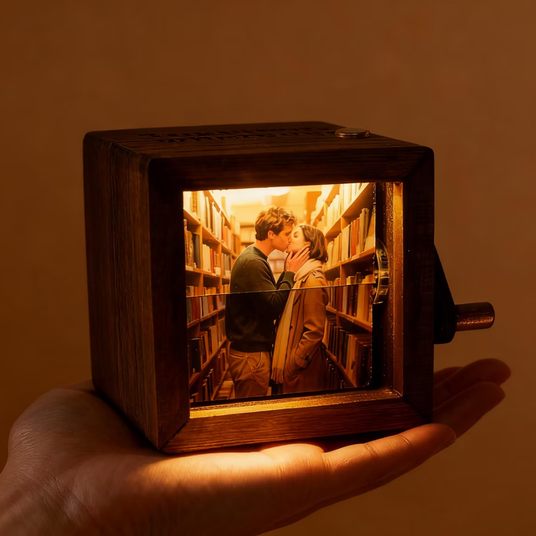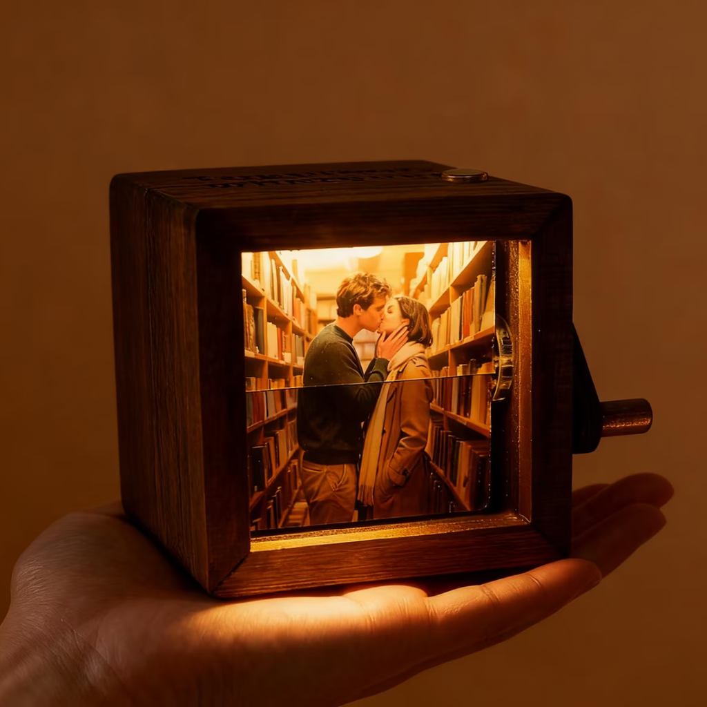 Personalized Wooden Flipbook Animation Box with Light – Custom Photo Crank Box, Handmade Memory Gift for Anniversary, Birthday & Wedding