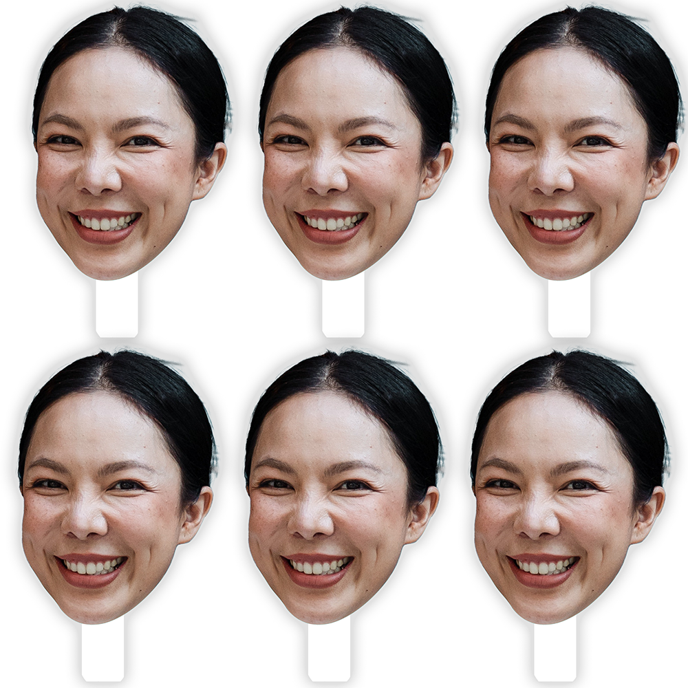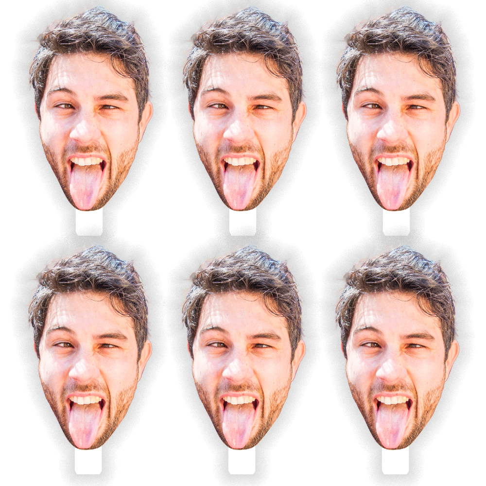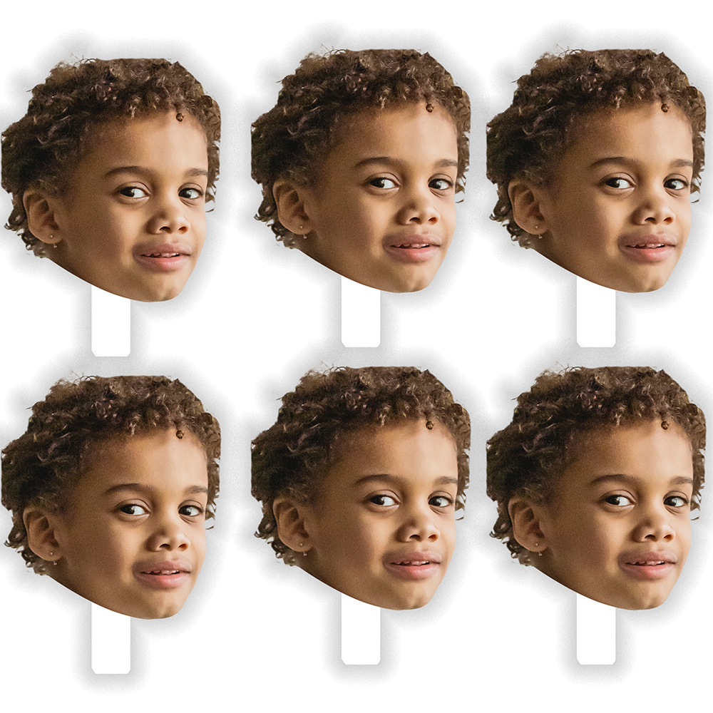 Celebrate a special someone with this set of 6 Fun Face Cutout Paddles featuring one image of your loved one’s face. Fun face cut outs are perfect for a school sporting event or graduation. Large cutout faces are also a great addition to a bachelorette party, adult birthday party or retirement party. Simply upload one photo and we will do the rest to create a set of six matching face cutouts. Large face cutouts are made of durable corrugated plastic, so they can be used repeatedly. They are even waterproof and weather resistant, so you can show off your honoree both indoors & outside.