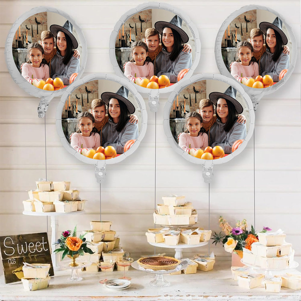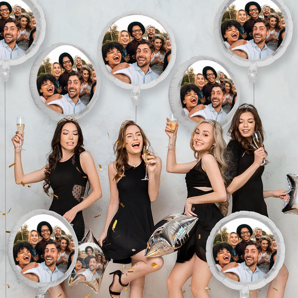 Custom party balloons, personalized foil balloons, 18-inch balloons with photo, custom heart-shaped balloons, reusable aluminum foil balloons, party decoration ideas, custom balloons for birthdays, baby shower party balloons, wedding balloon decorations, holiday balloon décor.