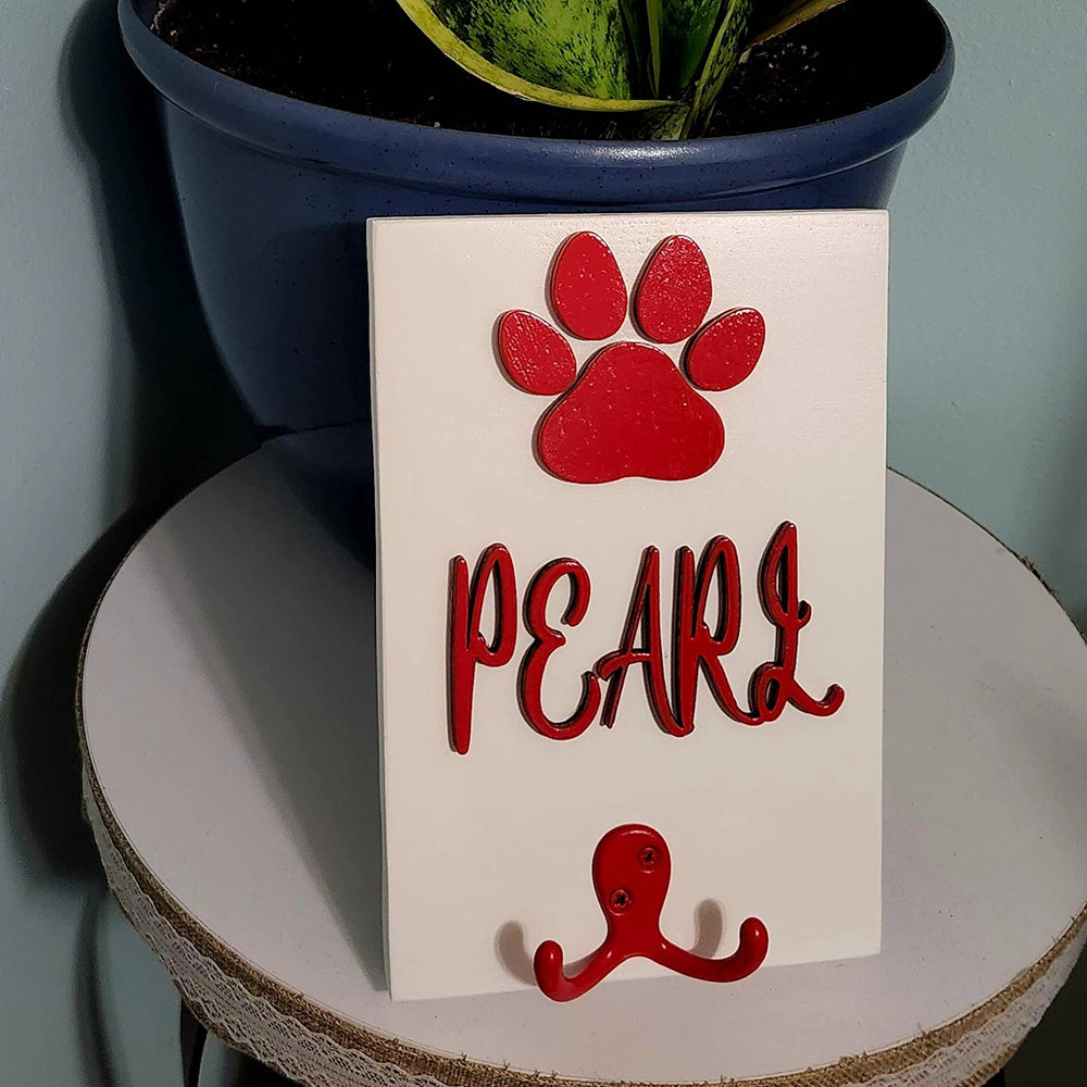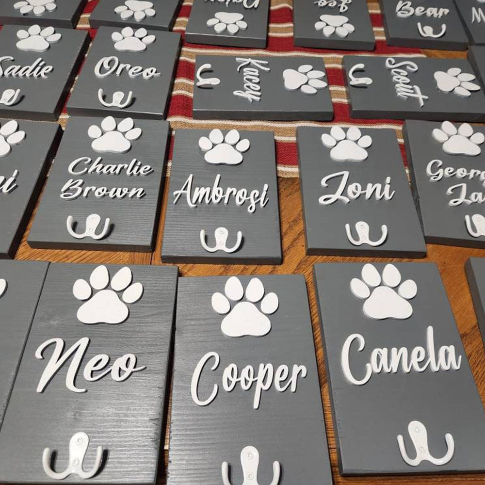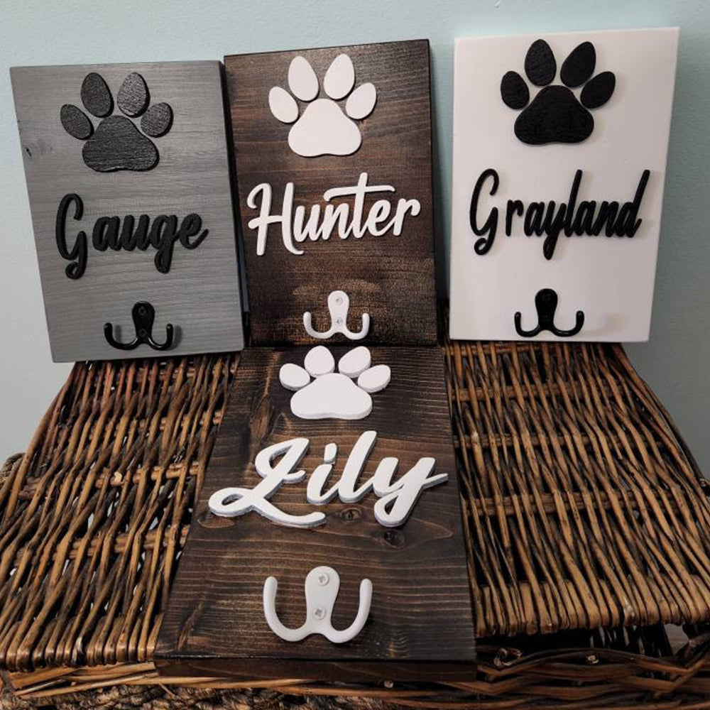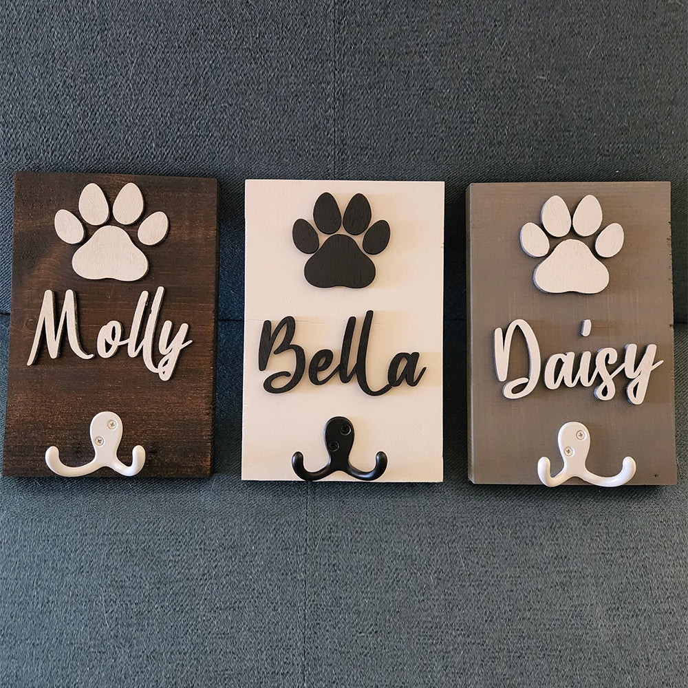 Mantenha o essencial do seu amigo peludo organizado e adicione um toque de charme personalizado à sua casa com nosso nome de parede de parede de nomes personalizados. Este letreiro de parede de madeira lindamente trabalhado apresenta um design encantador de impressão de Paw e pode ser personalizado com o nome do seu cão, tornando -o o presente perfeito para os amantes de cães ou uma adição maravilhosa ao seu próprio espaço. Diga adeus a desordem e olá para a organização em estilo!
