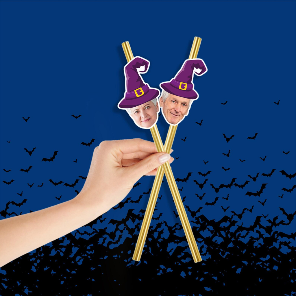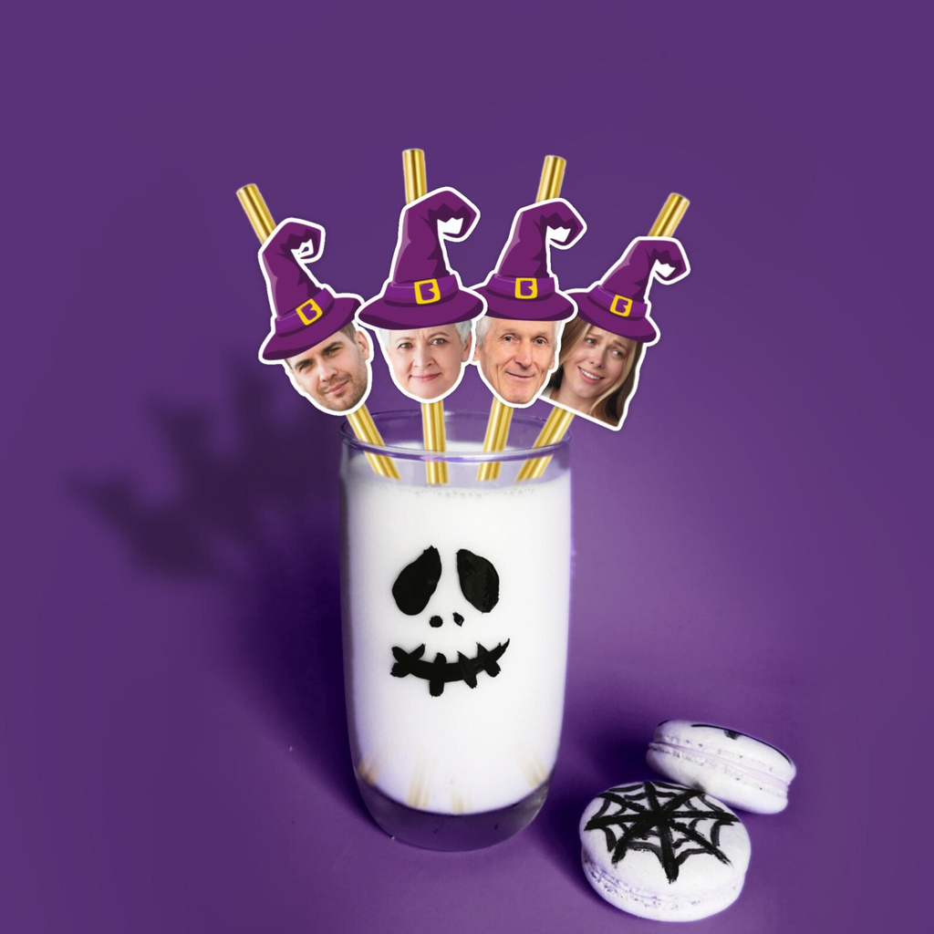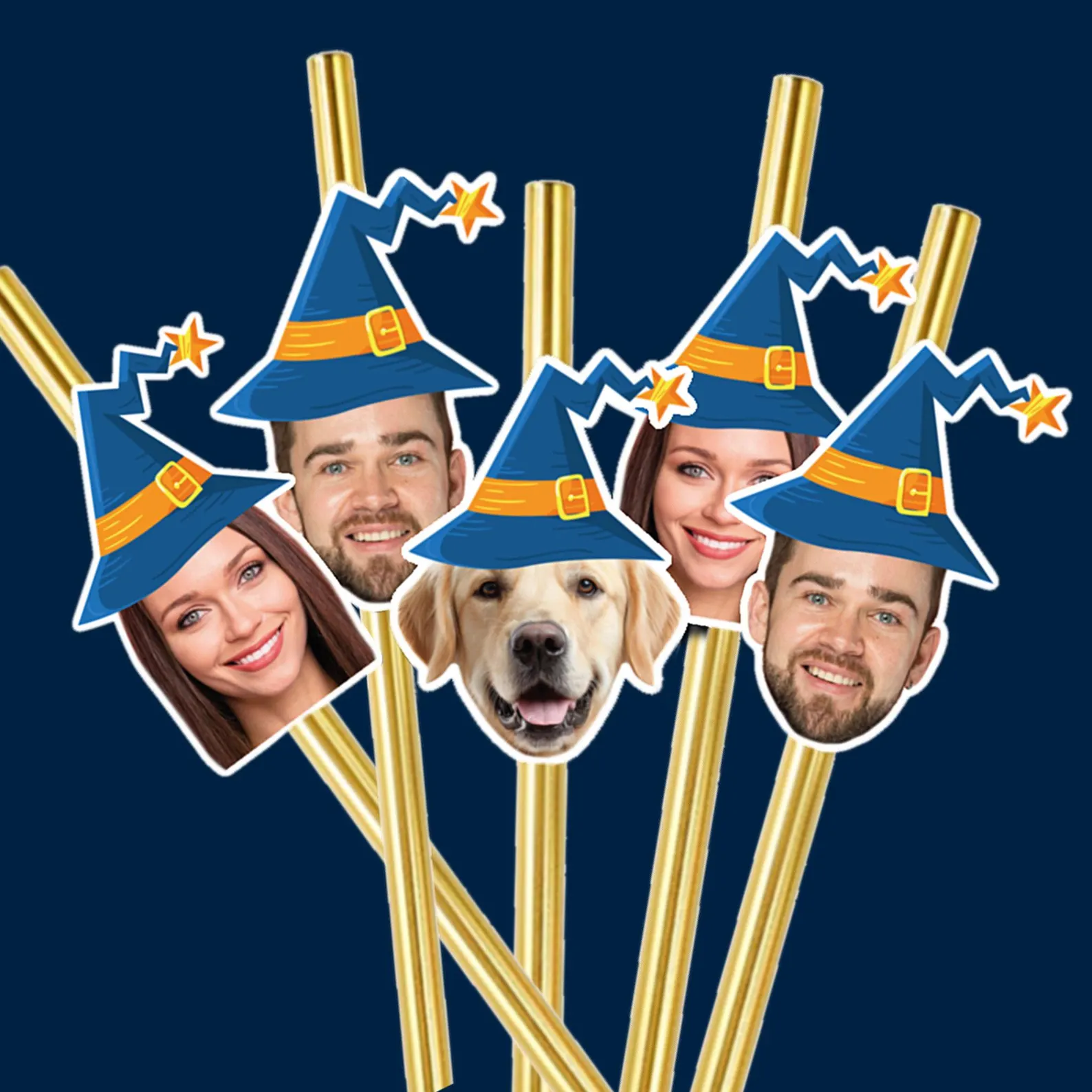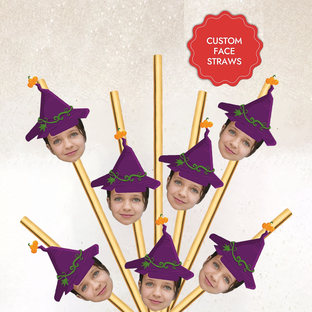 Custom Halloween Paper Straws with Photo – Reusable Personalized Party Straws for Drinks, Birthdays, Bars & Events