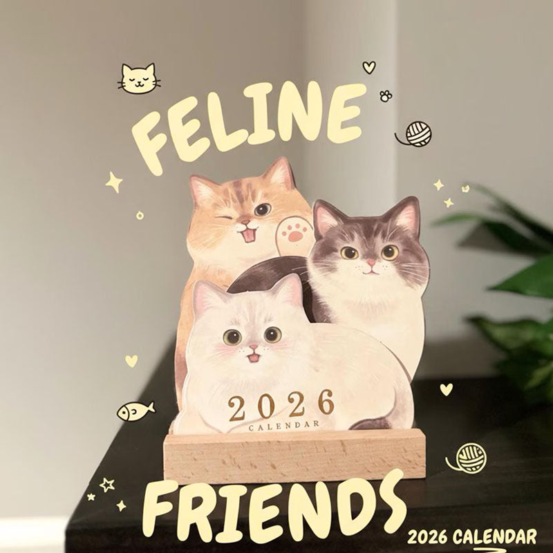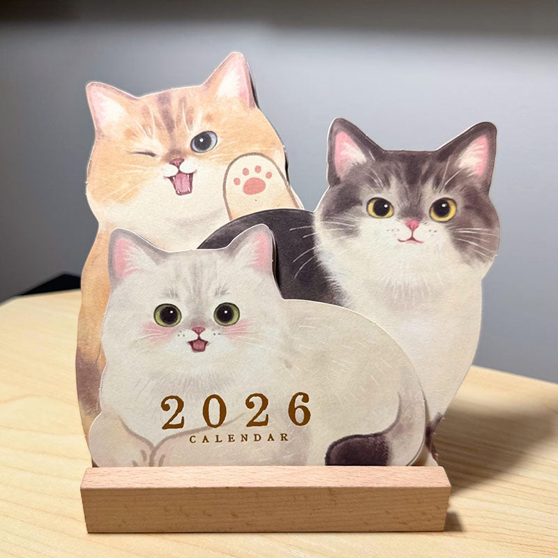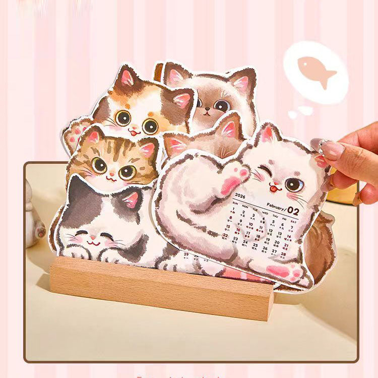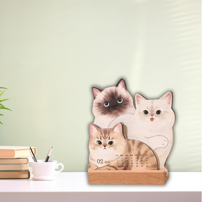 3D Cat Desk Calendar 2026: Kawaii Wooden Animal Planner
