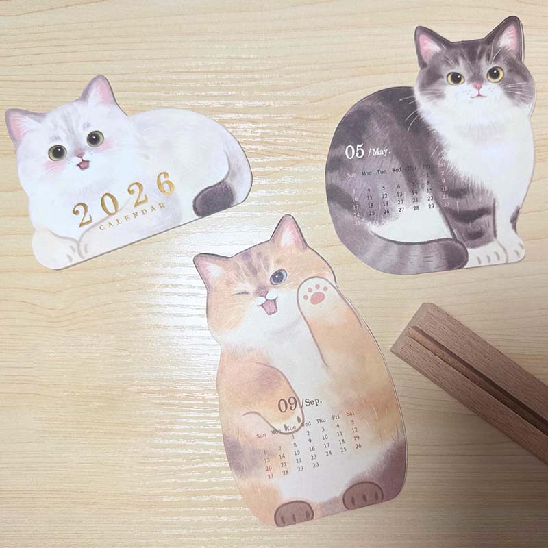 Add a touch of charm to your desk or workspace with our 2026 Desktop Calendar featuring adorable kittens! This cat-themed calendar is perfect for cat lovers, offering a new kitten each month to brighten up your day. Whether you're looking for a cute addition to your planner, desk, dorm decor, or bookshelf, this calendar is sure to bring smiles all year long.