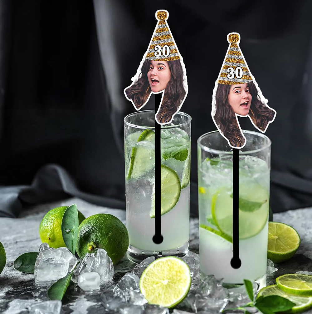 Personalized Face Cocktail Stirrers - Drink stirrers personalized with face,Funny Birthday Decor - 30th, 40th, 50th, 60th, 70th Birthday - 30th Birthday Party Decor
