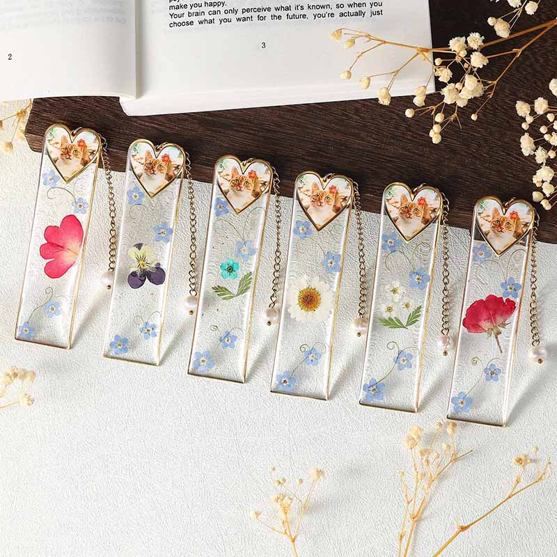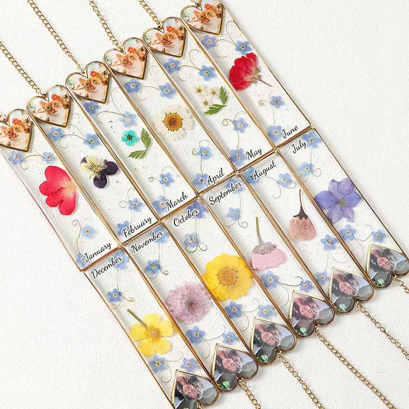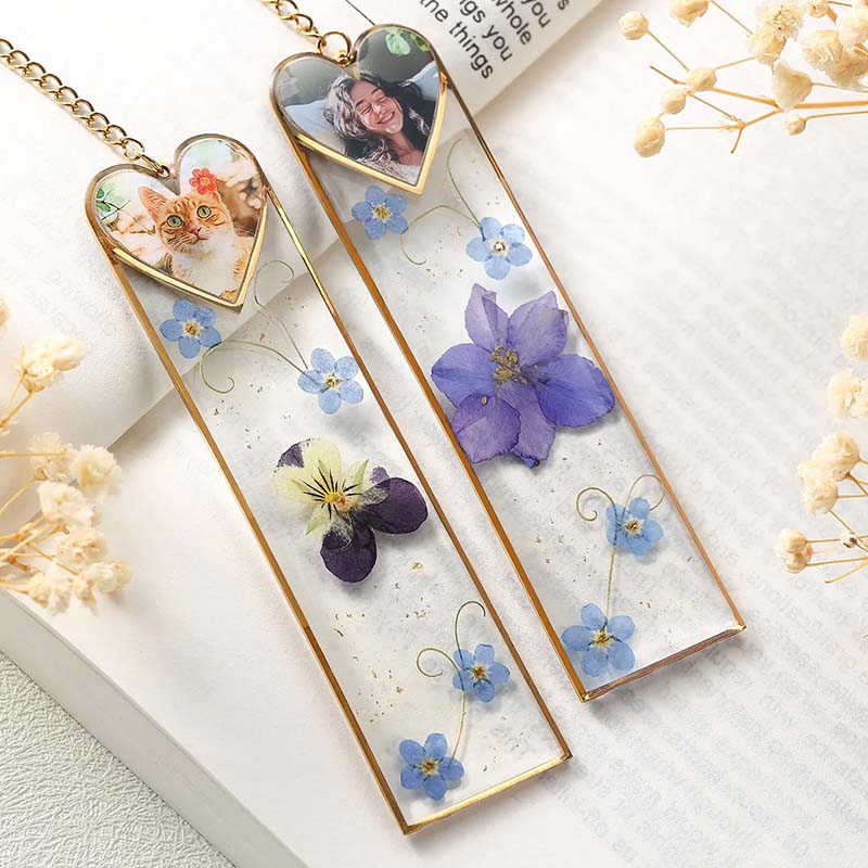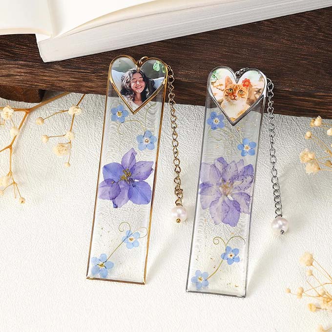 Make every page turn meaningful with our custom bookmarks, designed to combine elegance, personalization, and functionality. Choose from unique pendant-inspired shapes—heart, diamond, or rectangle—crafted with real dried flowers and customizable with names, photos, pet portraits, holiday designs, or inspirational quotes. Perfect for gifts, commemorations, or everyday reading.