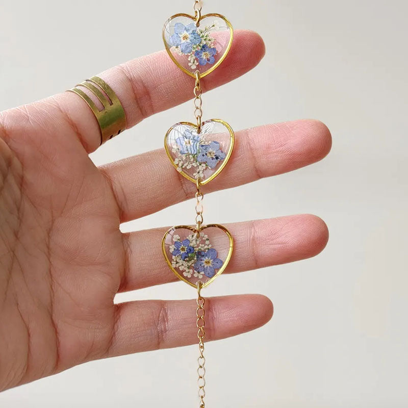 • Natural Floral Elements: Real pressed forget-me-nots sealed in resin for lasting beauty