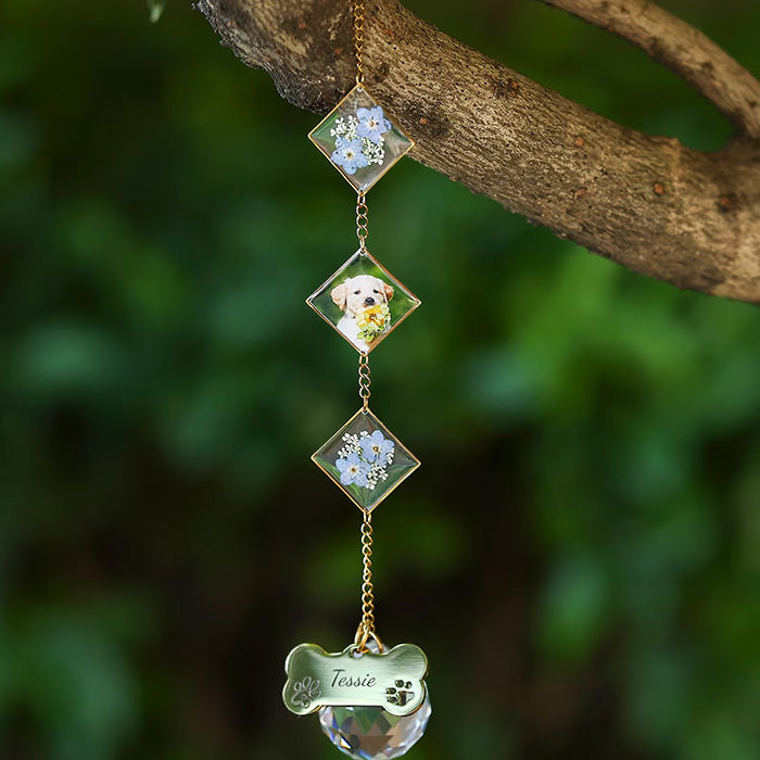 Celebrate the unconditional love your pet brought into your life with this Custom Pet Photo Suncatcher with Forget-Me-Not Flowers. A stunning, personalized rainbow bridge memorial decoration, it preserves precious memories in a radiant, meaningful way—bringing warmth, comfort, and light every day.