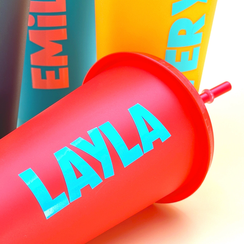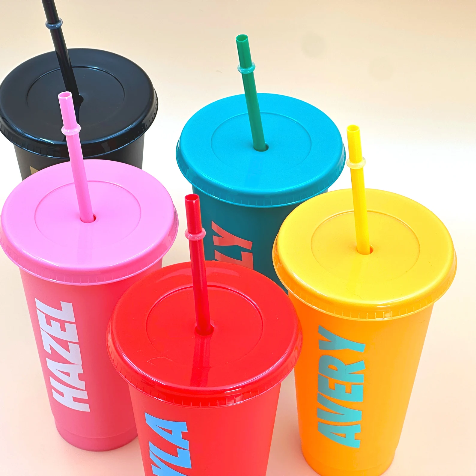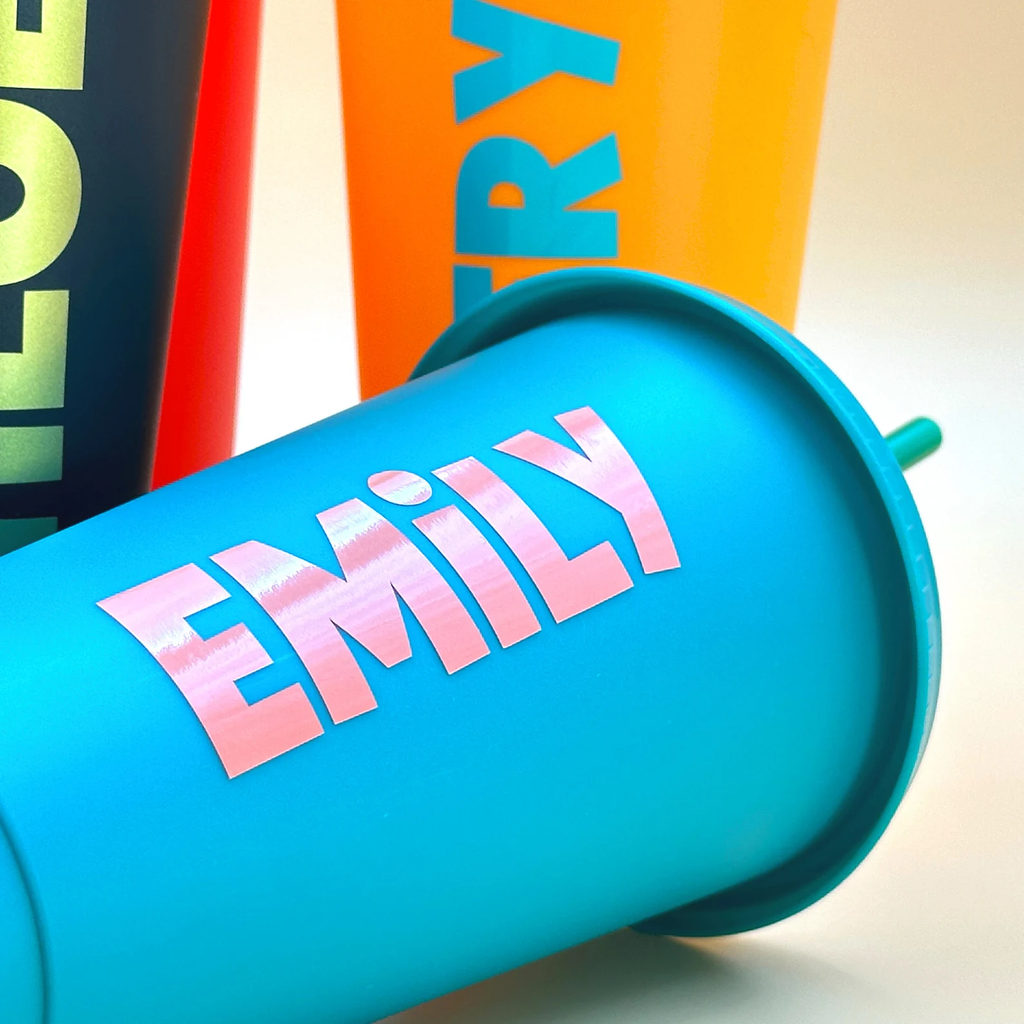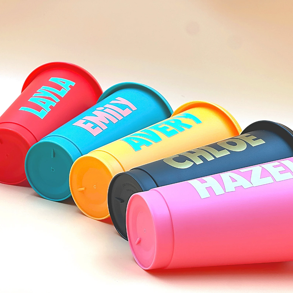 Imagine the delight on children's faces as they sip from their own Cold Cup Personalised at a birthday party. These 24oz / 710ml tumbler cups with straws are perfect party favours. Crafted from recycled material and available in five vibrant colours, they are a fun and eco-friendly choice for any celebration. Elevate the party drinks with these customisable, colourful cups that kids will love!