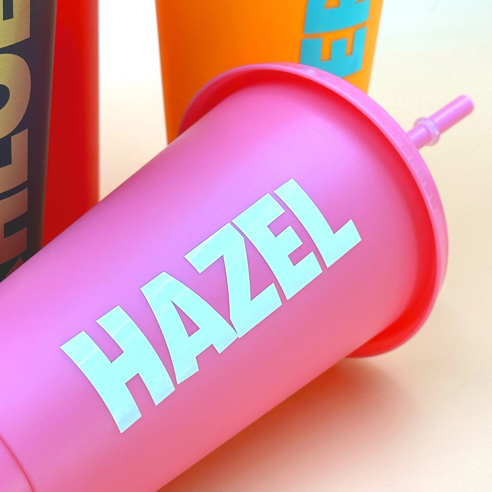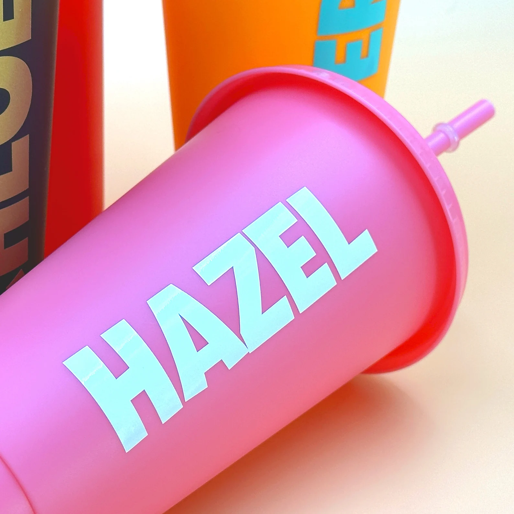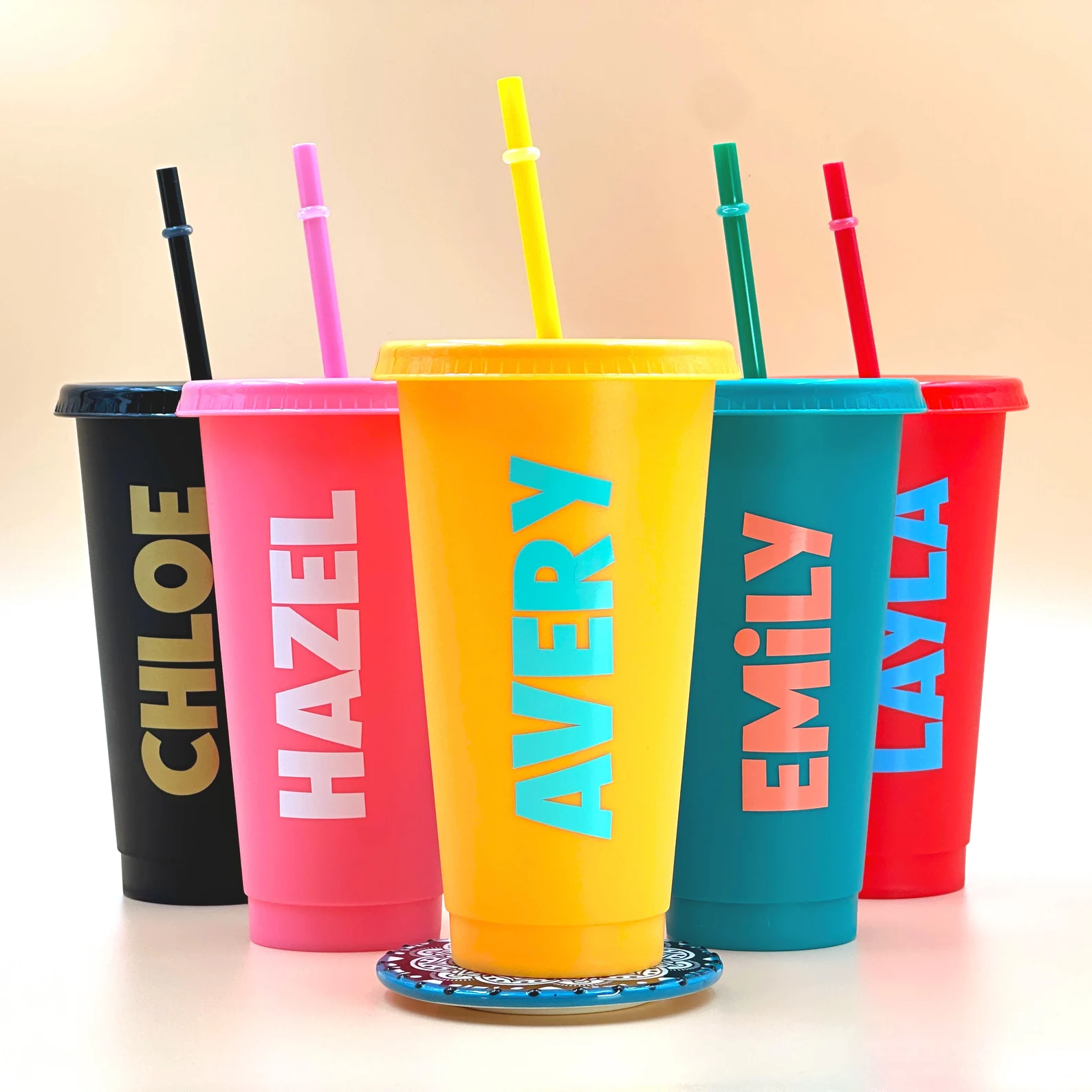 Imagine the delight on children's faces as they sip from their own Cold Cup Personalised at a birthday party. These 24oz / 710ml tumbler cups with straws are perfect party favours. Crafted from recycled material and available in five vibrant colours, they are a fun and eco-friendly choice for any celebration. Elevate the party drinks with these customisable, colourful cups that kids will love!